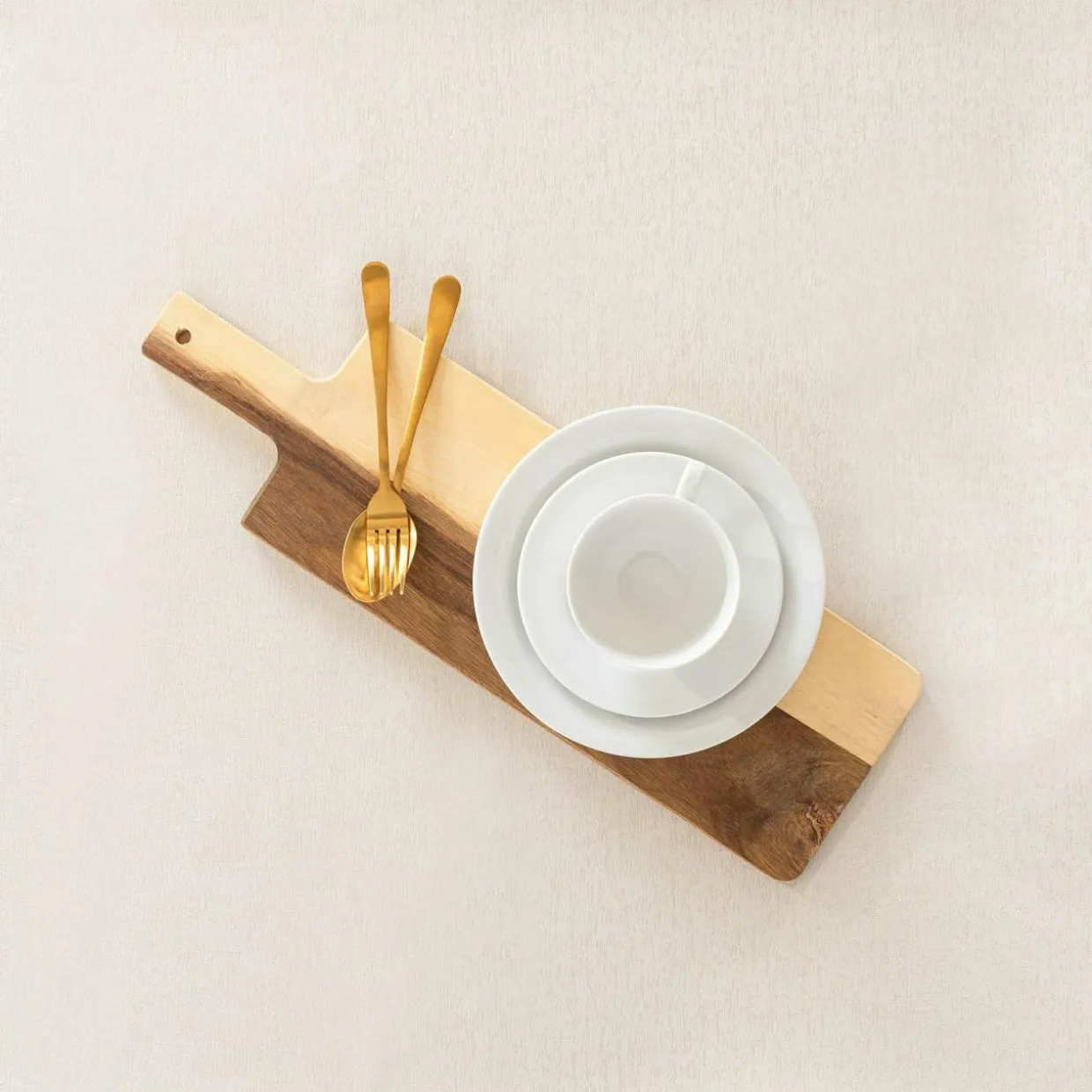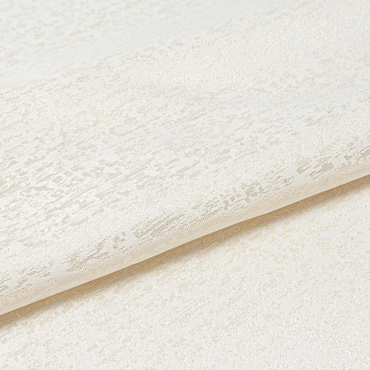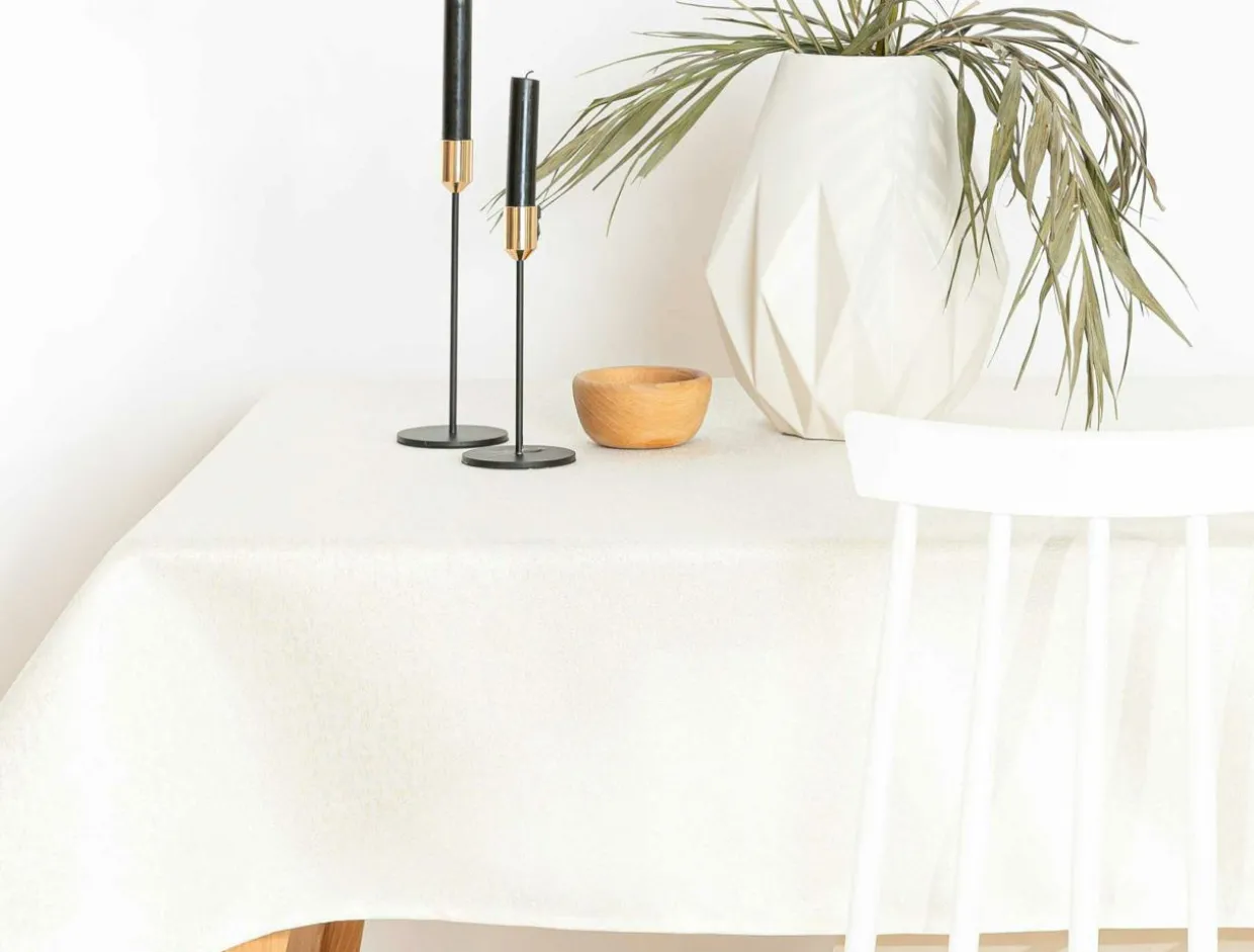 Udekoruj swój stół w jadalni białym obrusem, który ma połyskujące przeszycia metaliczną nitką.