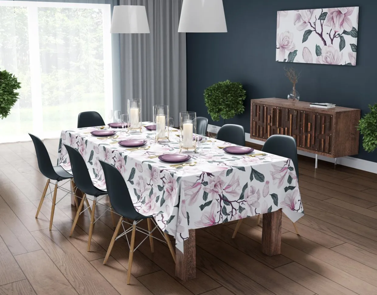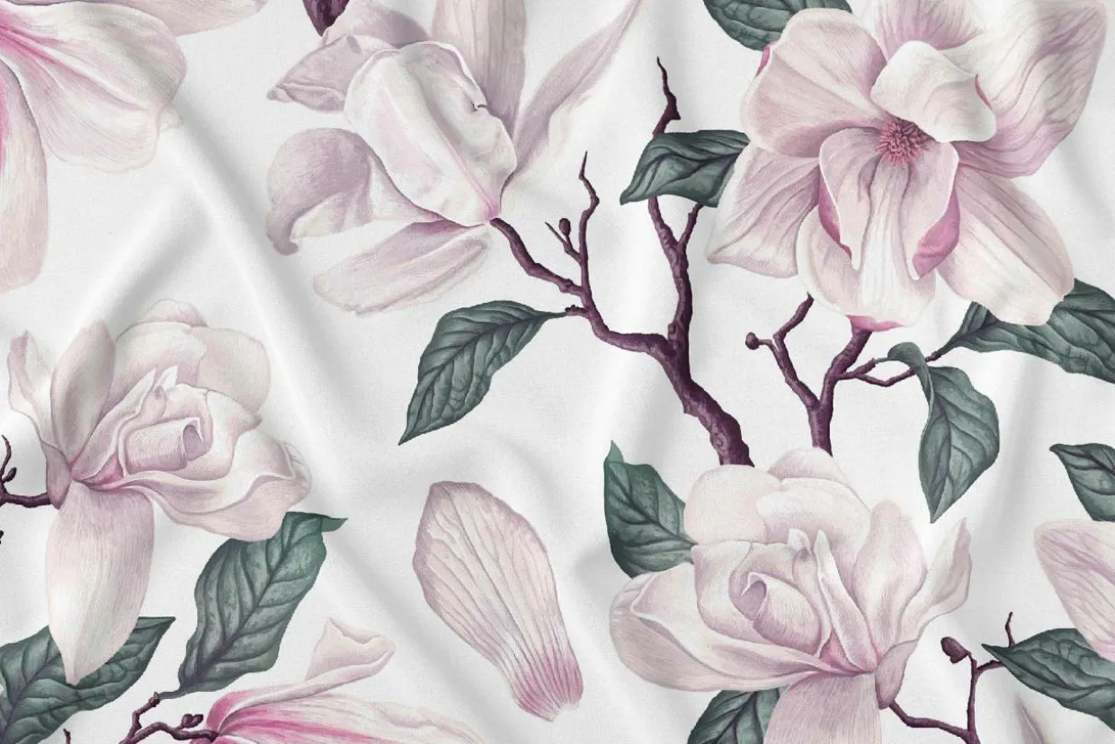 Wzór inspirowany magnoliami zachwyca dbałością o szczegóły.