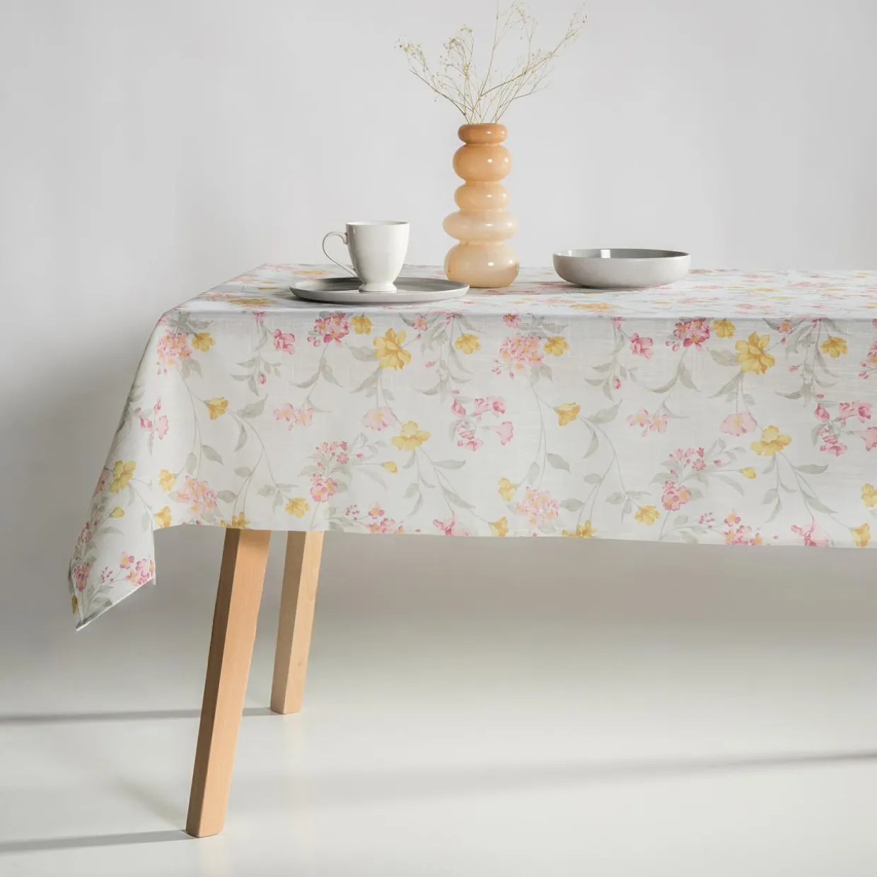 Potrzebujesz dekoracji do rustykalnej lub romantycznej jadalni? Biały obrus z kolekcji GARDENIC wyróżnia się roślinnym wzorem. Różowo-żółte kwiatki delikatnie ożywią przestrzeń i dodadzą wnętrzu uczucia świeżości.