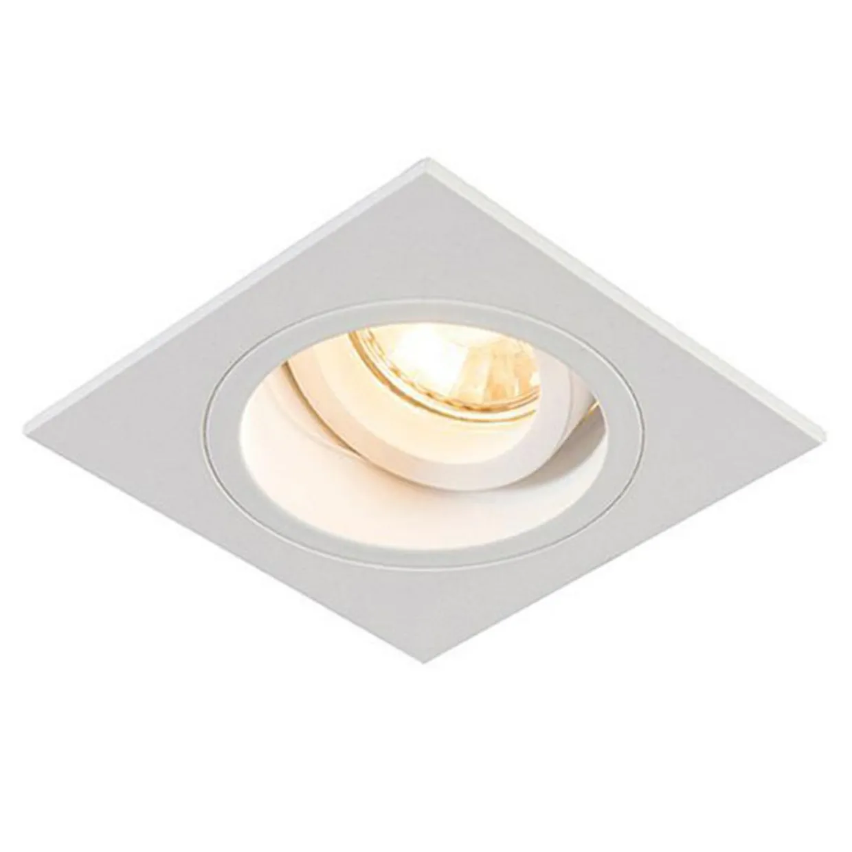 Kryza spotu o kształcie kwadratu niewiele odstaje od powierzchni sufitu. Żarówka jest osadzona w zagłębieniu, co sprawia, że światło jest mniej rozproszone.