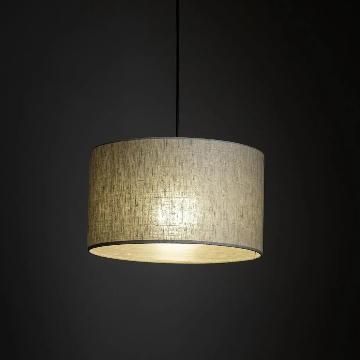 - Górna część oprawy i mocowanie są w czarnym, matowym kolorze. Dolna posiada lniany abażur, który mieści 1 żarówkę typu E27.