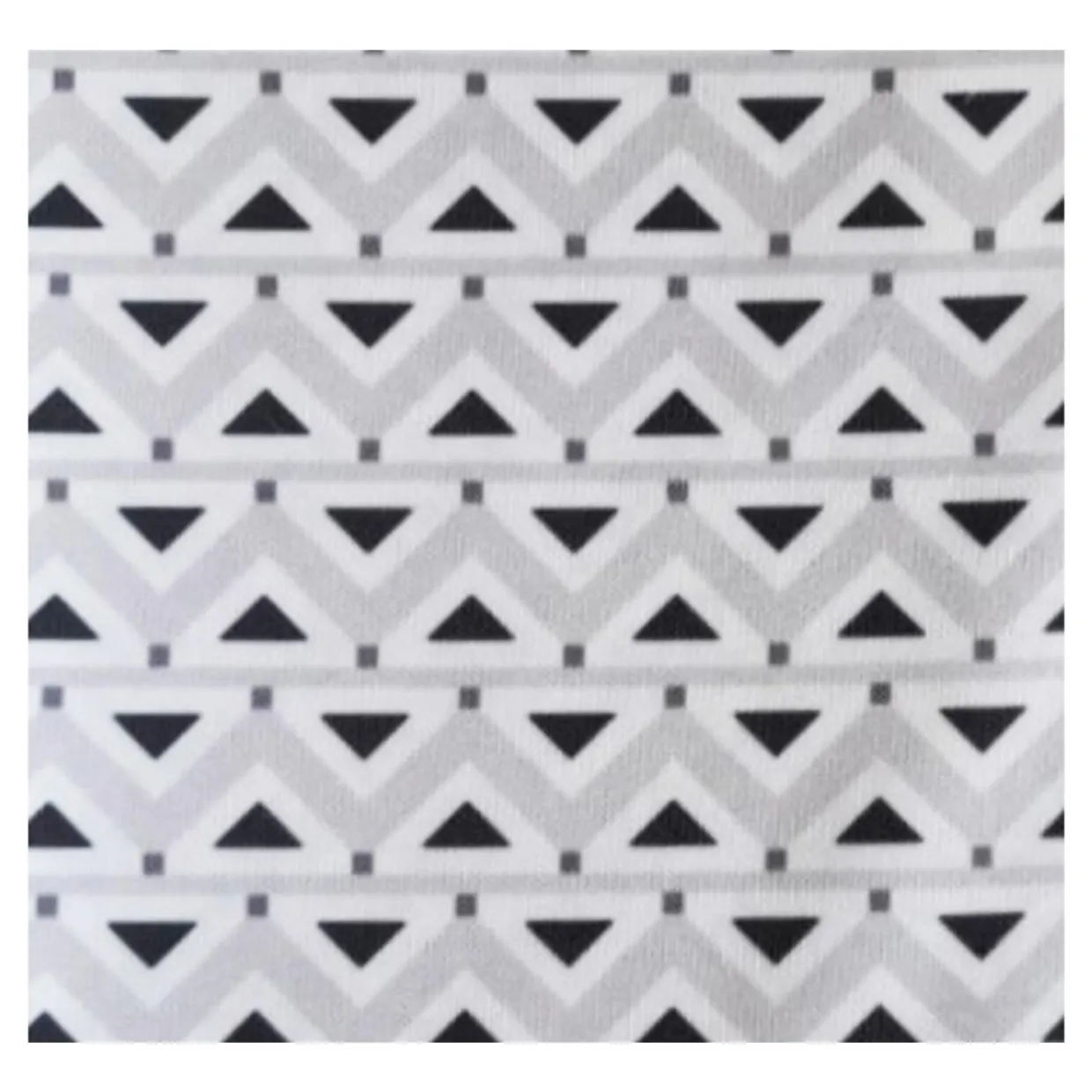- Panel pokryto tkaniną z geometrycznym wzorem w trójkąty. Taki dekor sprawdzi się w nowoczesnych sypialniach, a także w pokojach młodzieżowych.