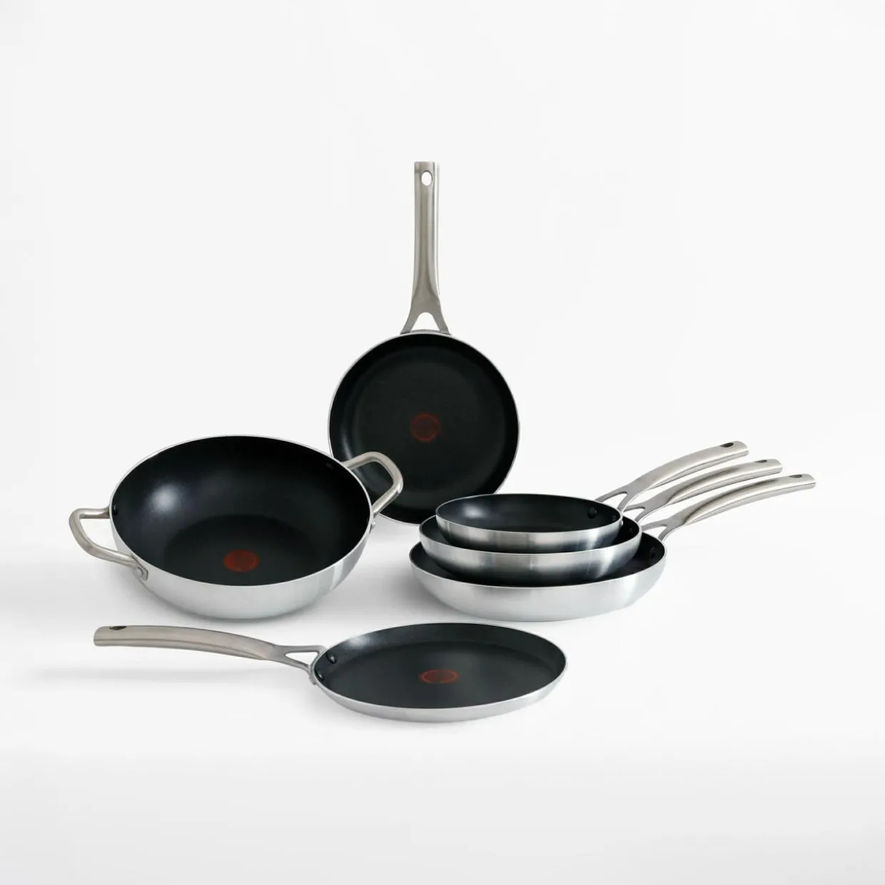 - Metaliczny połysk zewnętrznej strony nadaje patelni elegancki, nowoczesny wygląd.