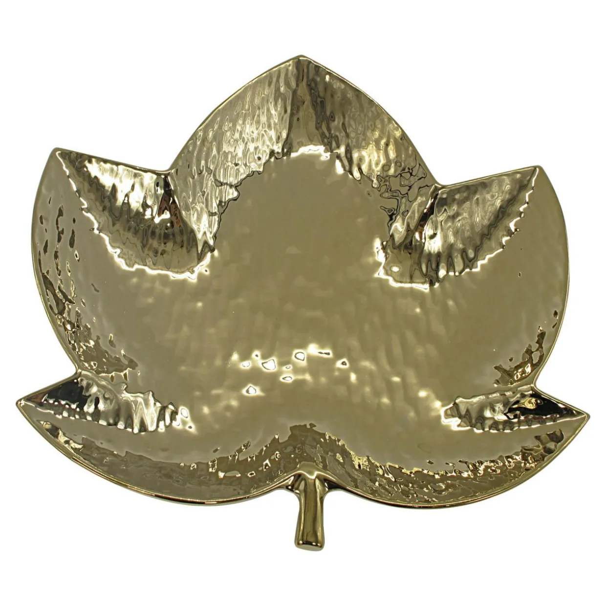 Patera dekoracyjna LIŚĆ złoty 21 cm
