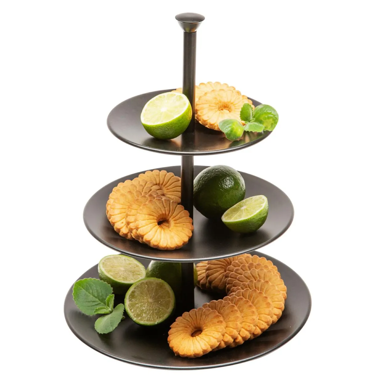 Patera piętrowa na ciasto i owoce 3 poziomy czarna 34 cm