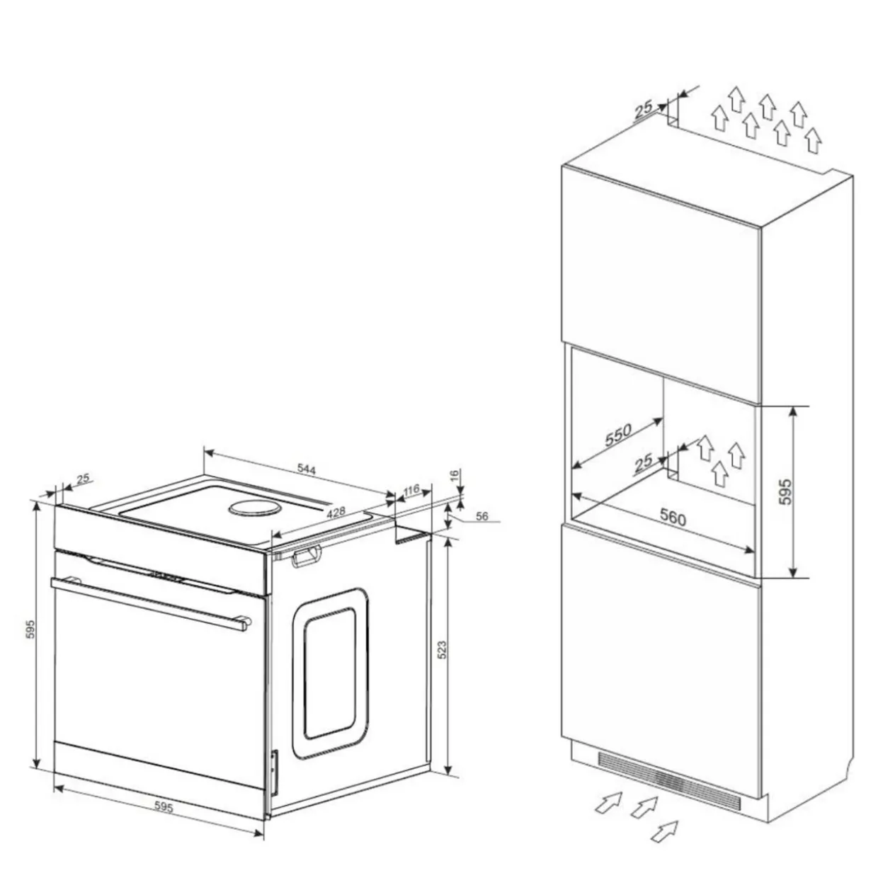 Komora AMICA ED57525V STUDIO PYRO jest większa i ma więcej poziomów pieczenia. Większe są również blachy, a osłona wentylatora przyspiesza nagrzewanie.