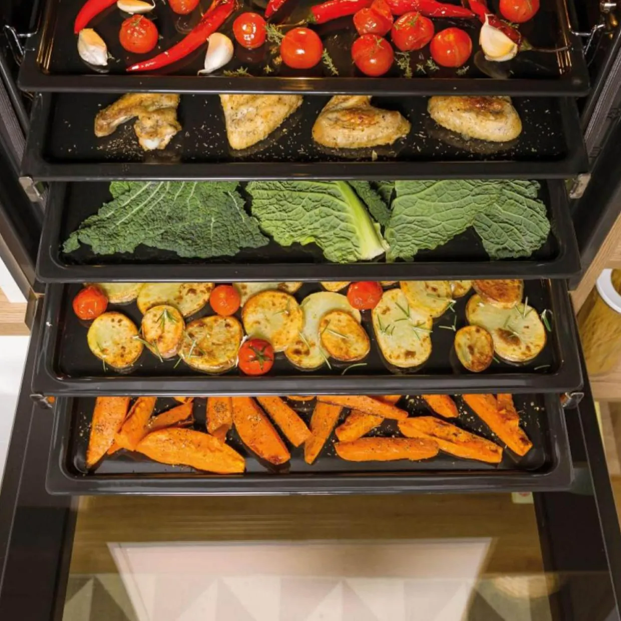 Kształt wnęki piekarnika HomeMade został zainspirowany tradycyjnymi piecami opalanymi drewnem – dzięki niej panuje lepsza cyrkulacja powietrza w piekarniku oraz temperatura w całym piekarniku jest stabilna. Nigdy więcej Twoje dania nie będą przypalone z jednej strony i niedopieczone z drugiej.