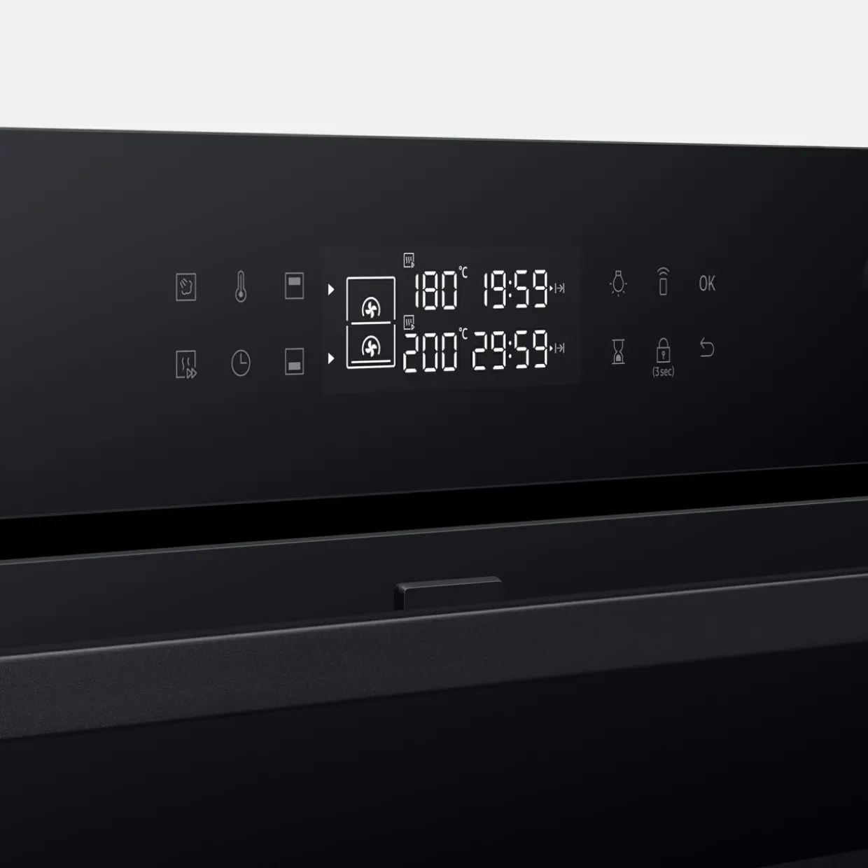 blokada bezpieczeństwa, blokada przycisków, ciche domykanie drzwi, Dual Cook, timer, wyświetlacz LED, zegar elektroniczny, zegar kuchenny