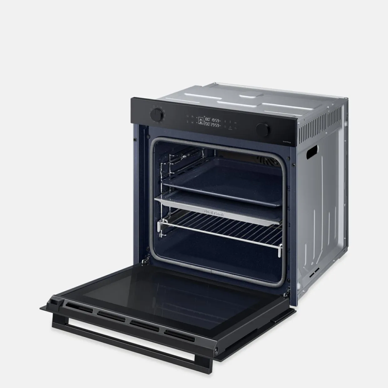 Nowoczesny piekarnik w eleganckim czarnym szkle to połączenie technologii Dual Cook, funkcjonalnych rozwiązań i intuicyjnej obsługi.