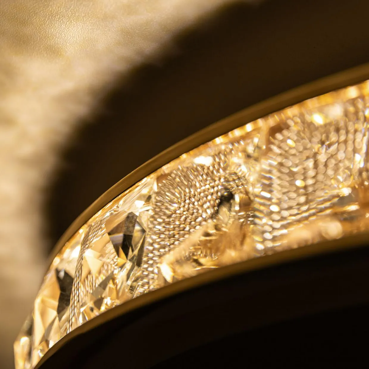 Lubisz złote wykończenie i błysk światła przepuszczonego przez kryształ? Plafon MURIEL posiada właśnie takie wykończenie.