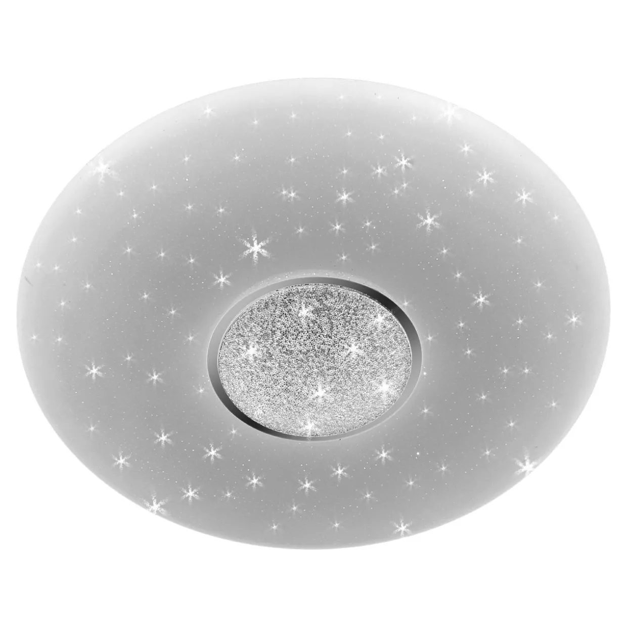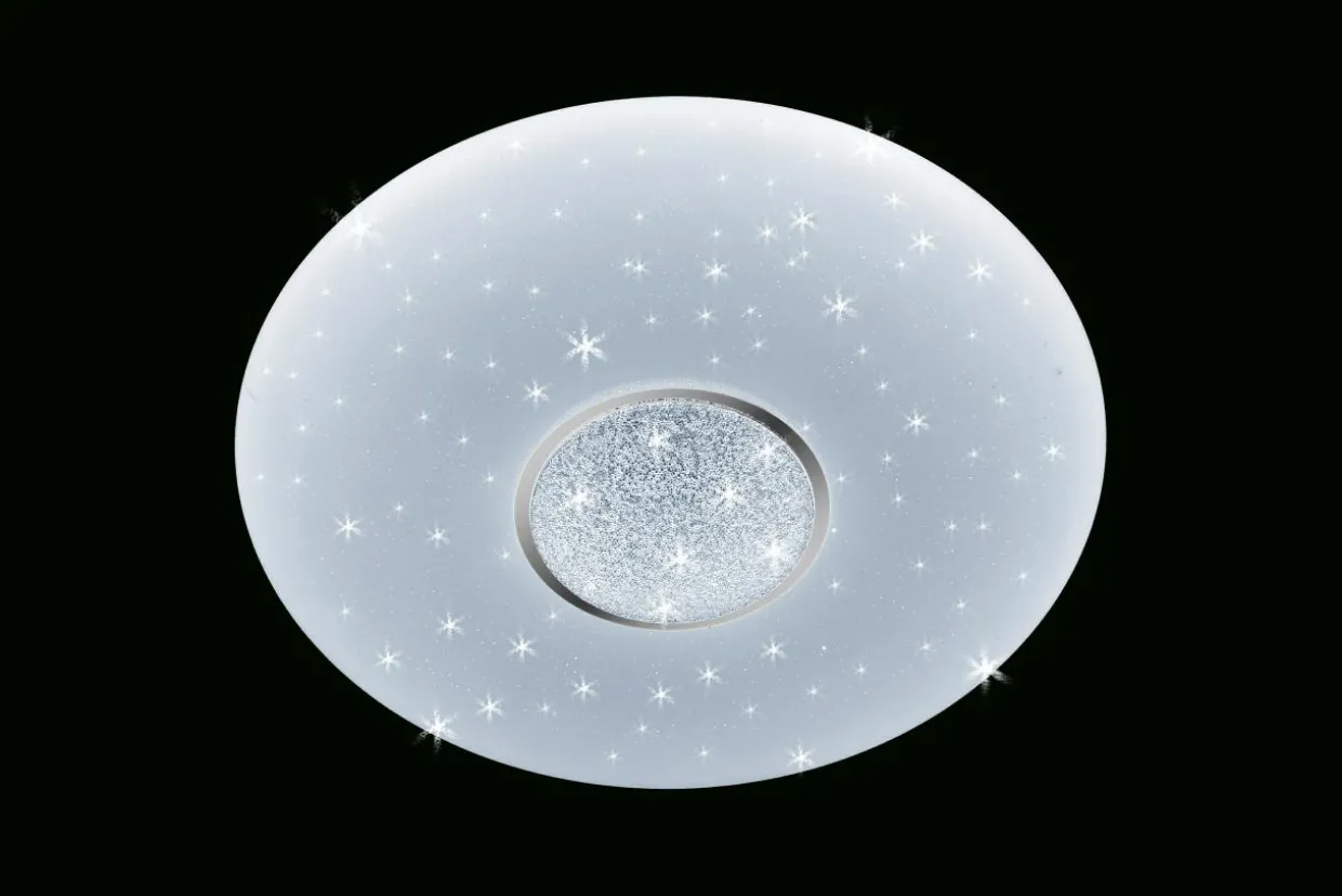 Klosz z tworzywa sztucznego udekorowany efektem gwieździstego nieba podkreśla estetyczny wygląd lampy. Szczególne wrażenie robi dekoracja, która tworzy wrażenie rozgwieżdżonego nieba. Bardzo interesująco prezentuje się zarówno przy zapalonym, jak i zgaszonym świetle.