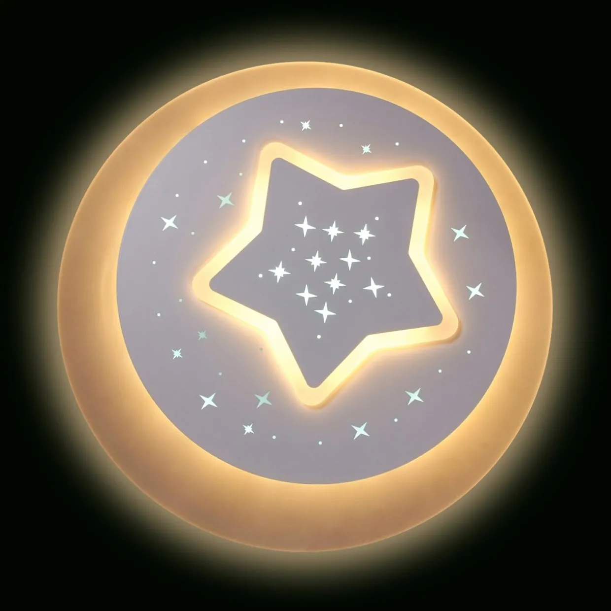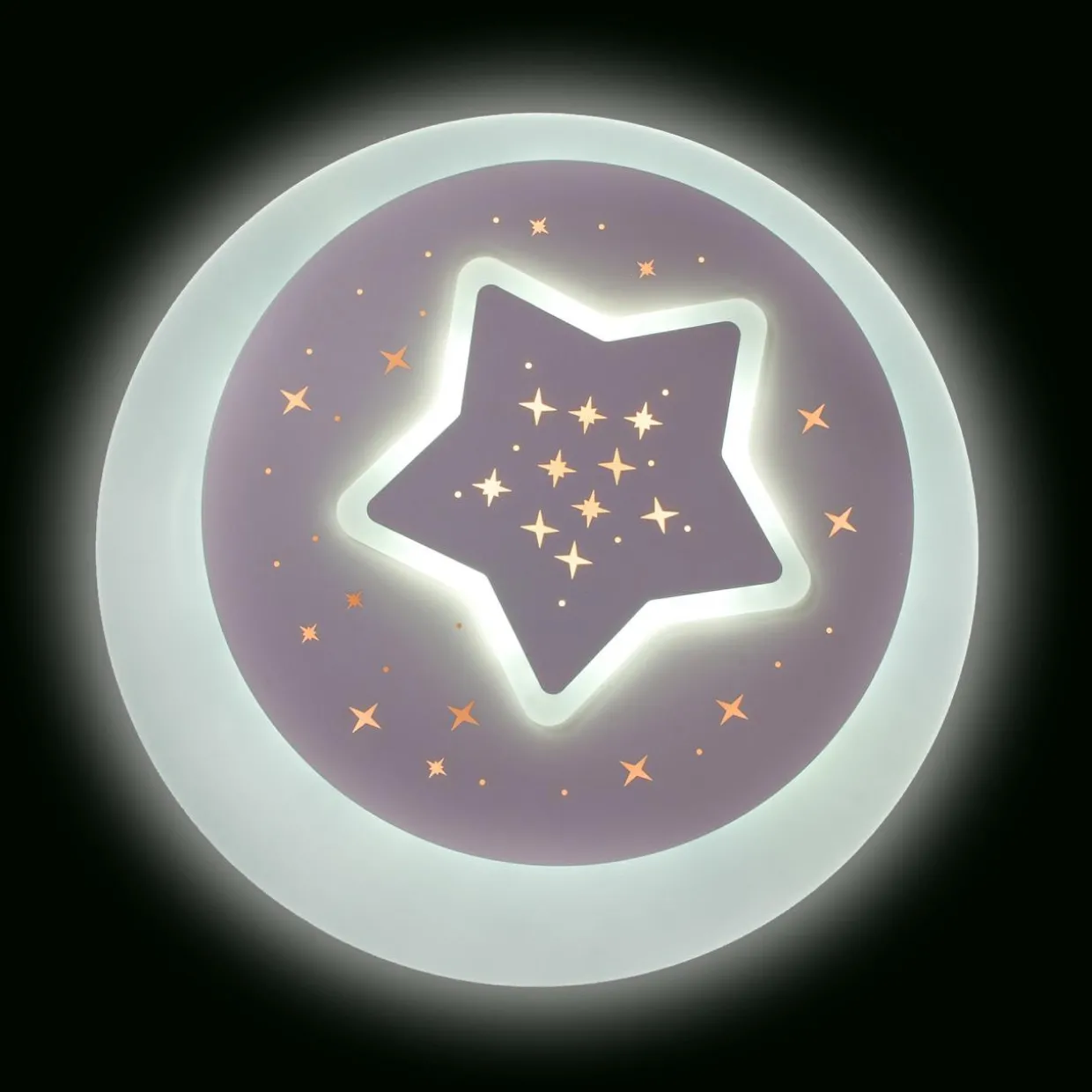 - okrągły plafon przedstawia duża pojedynczą gwiazdę otoczoną mniejszymi, skrzącymi się punkcikami