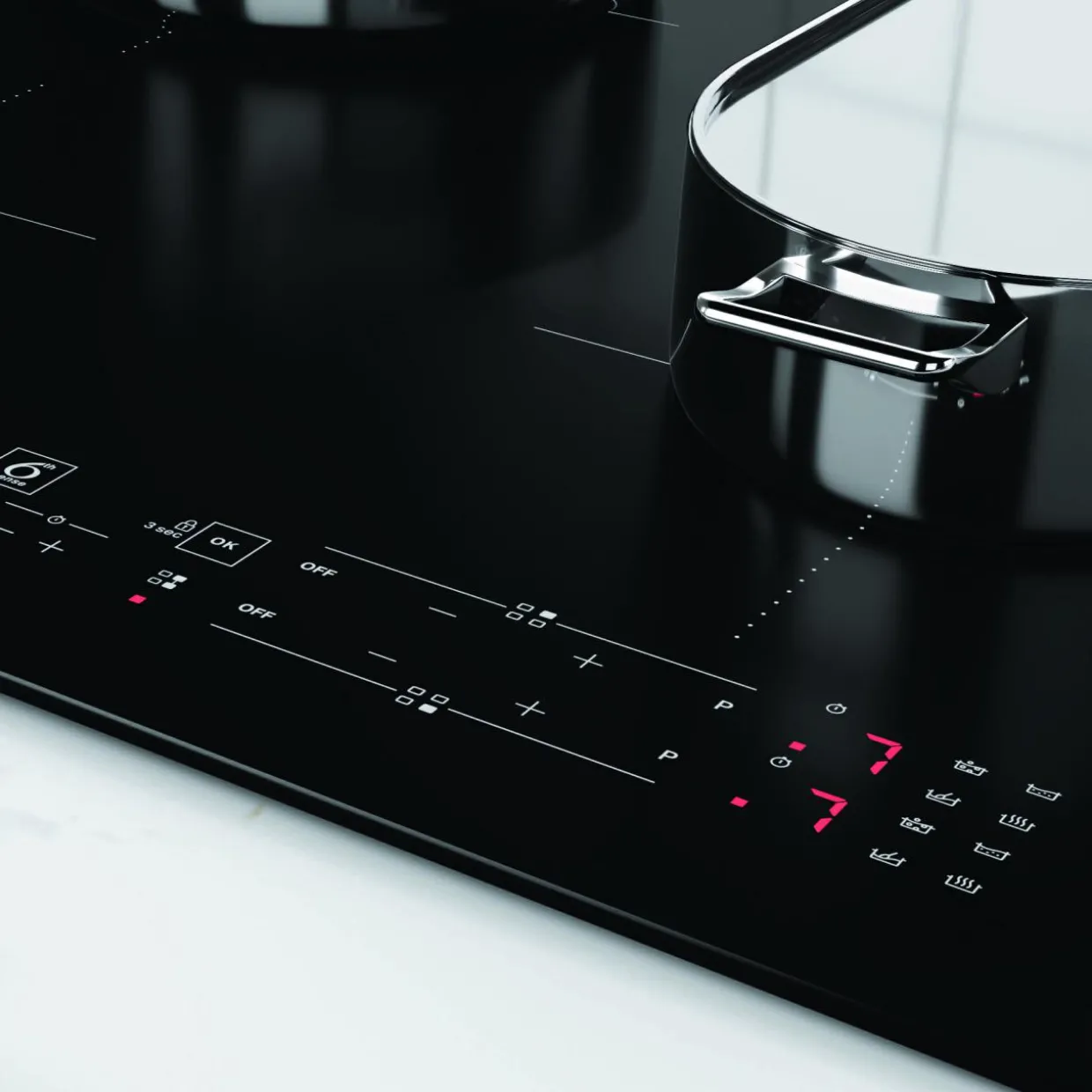 Elektroniczne sterowanie oraz powierzchnia z czytelnie oznaczonymi strefami grzewczymi łączy bezpieczeństwo oraz estetyczny wygląd.