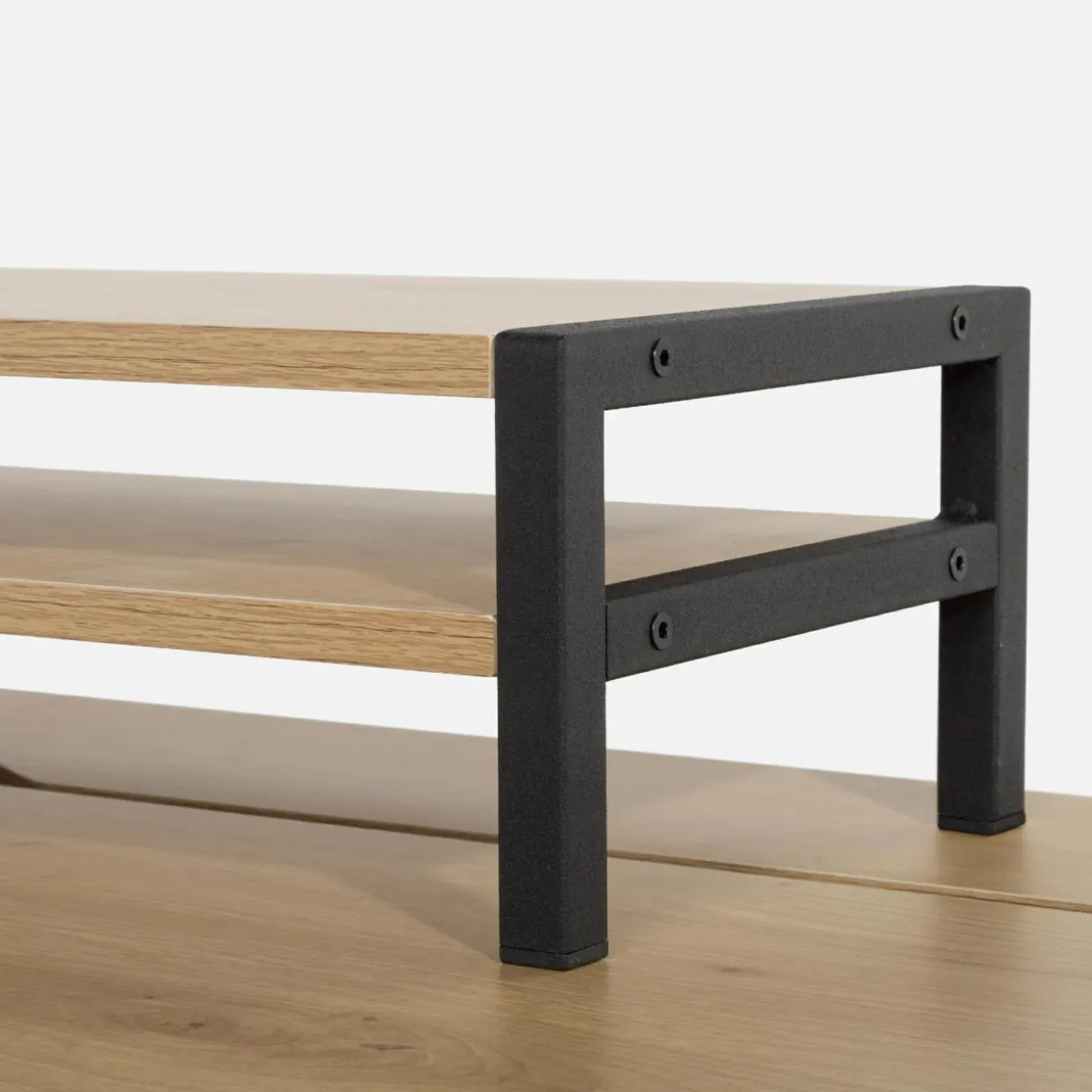 - Więcej przestrzeni roboczej – dodatkowa półka umożliwia przechowywanie klawiatury, książek lub innych przedmiotów, utrzymując biurko w porządku.
