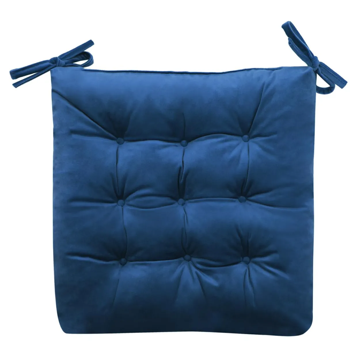 Estetyczne pikowanie i elegancka, welurowa tkanina w modnym granatowym kolorze urozmaicą aranżację kuchni, jadalni czy pokoju dziennego.