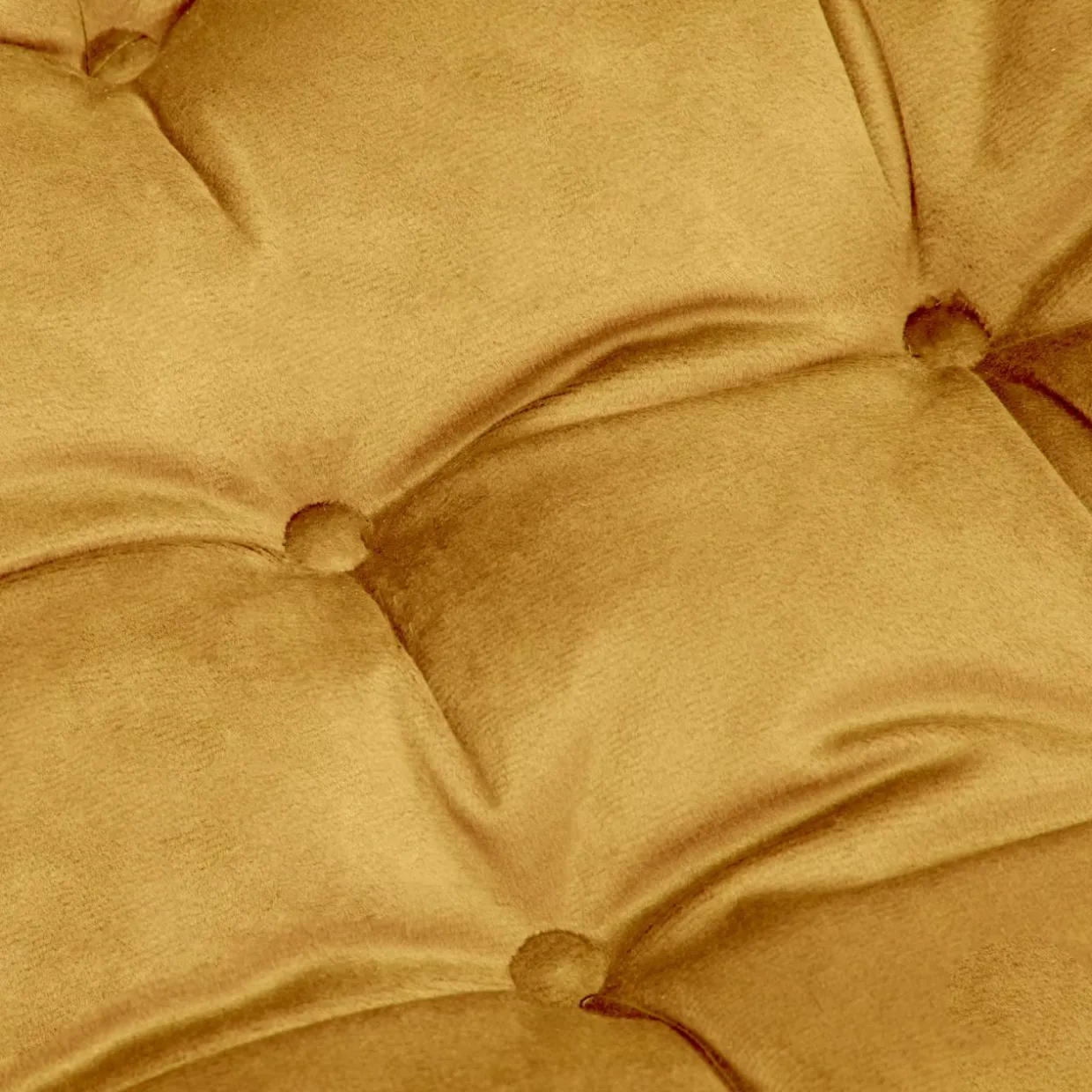 Estetyczne pikowanie i elegancka, welurowa tkanina w modnym musztardowym odcieniu urozmaicą aranżację kuchni, jadalni czy pokoju dziennego.