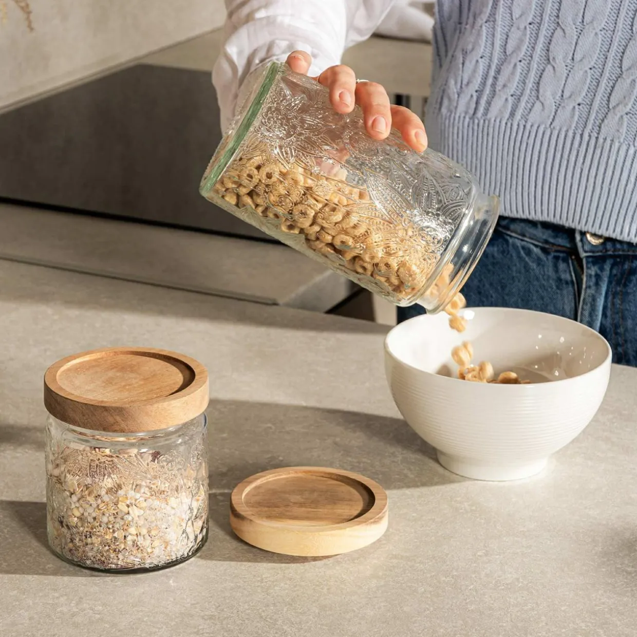 Pojemnik szklany z akacjową pokrywką 1000 ml