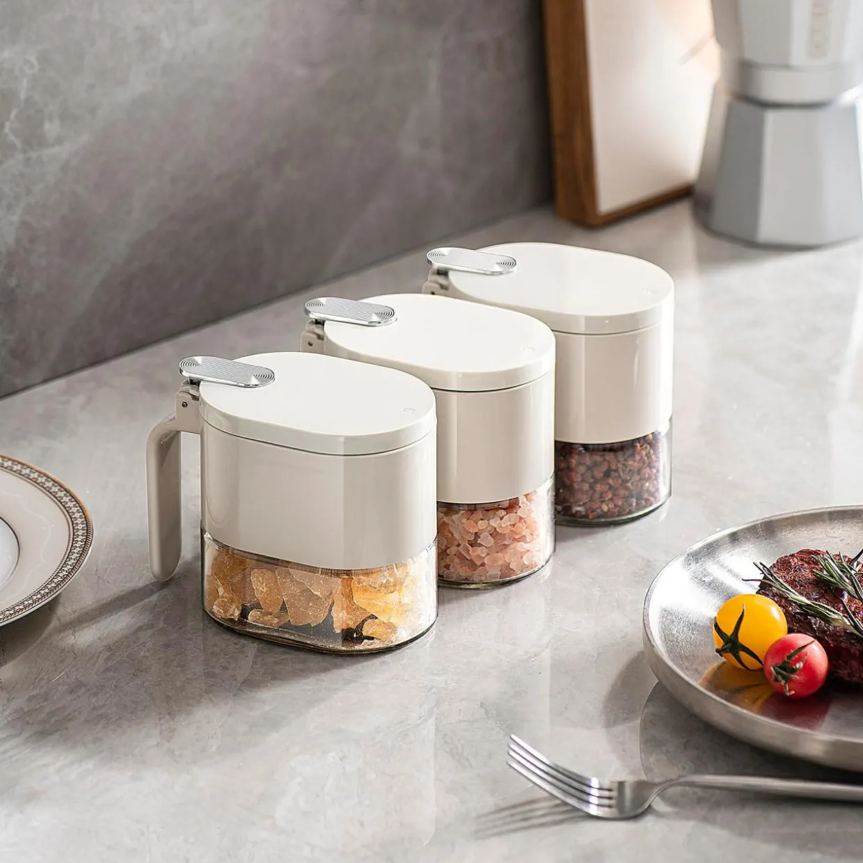 Pojemnik z uchylna pokrywką 340 ml jasnoszary