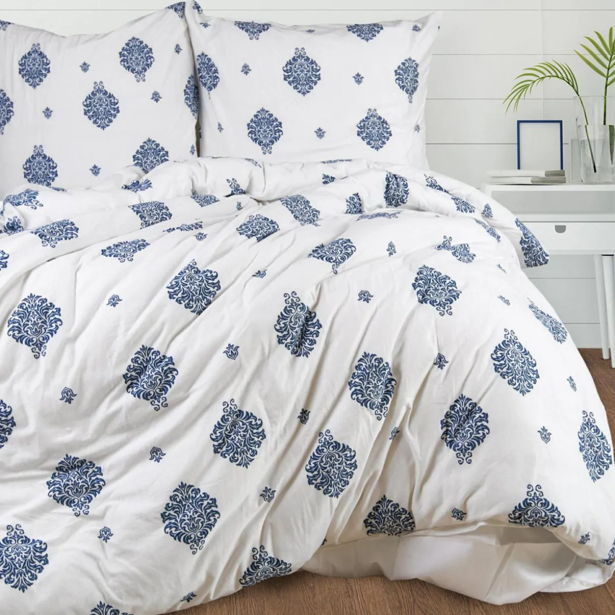 Dzięki pościeli JERSEYLOVE wizualnie ożywisz i uatrakcyjnisz wnętrze. Niebieski, dekoracyjny wzór wpisze się w nowoczesne aranżacje.