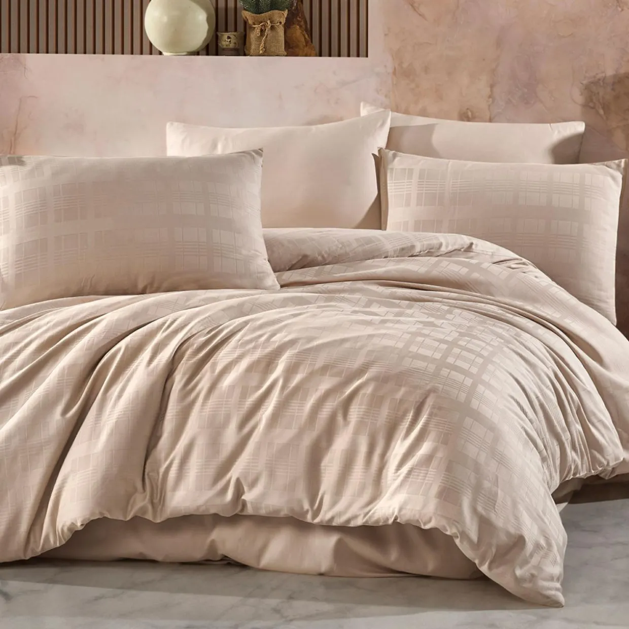 Gładki oraz przyjemny materiał otuli do snu, a beżowy kolor będzie się pięknie prezentował w nowoczesnej sypialni w zarówno przy jasnych, jak ciemnych odcieniach.