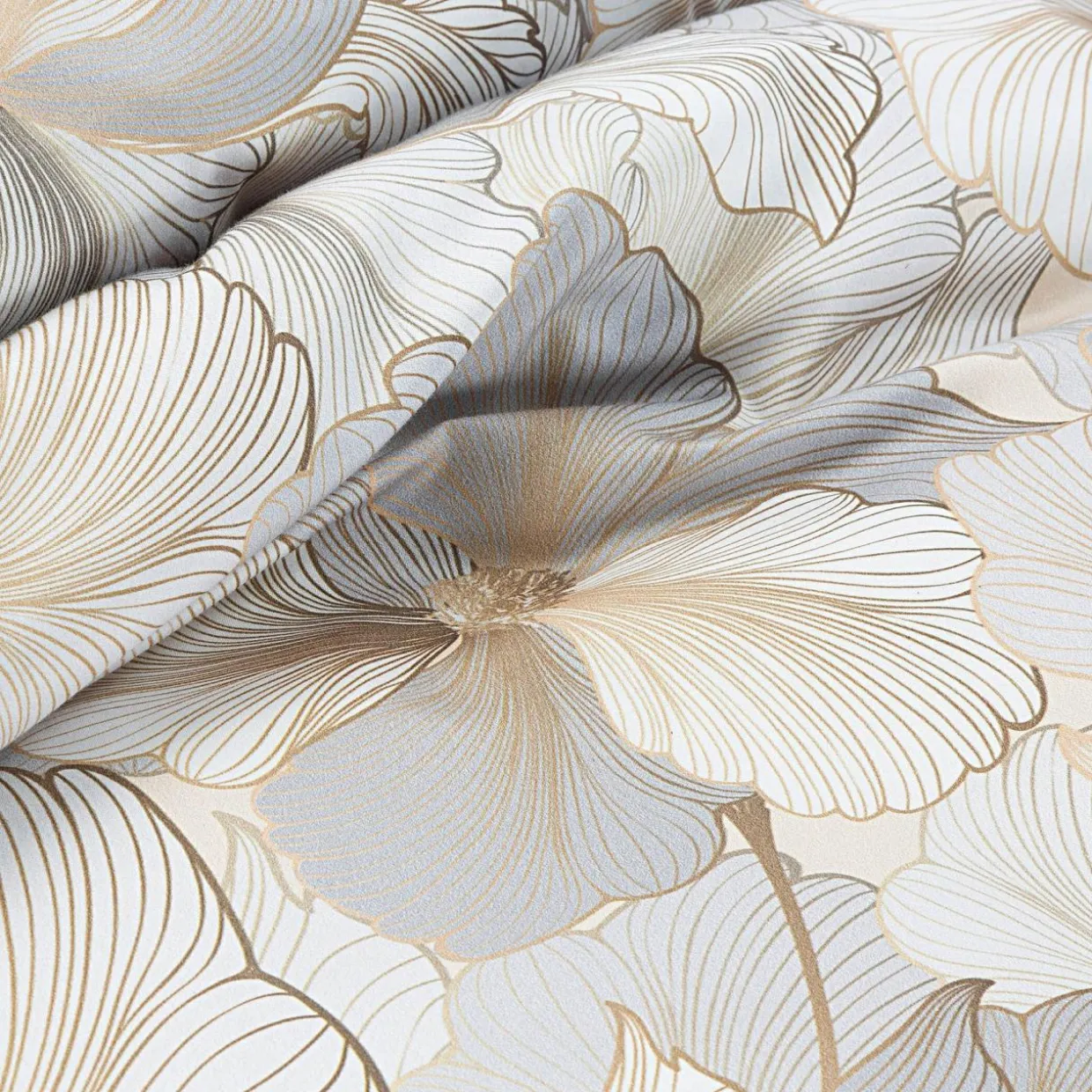 - Kwiatowy wzór lekko się mieni. Delikatny satynowy połysk sprawia, że materiał przypomina prawdziwe, złote aplikacje.