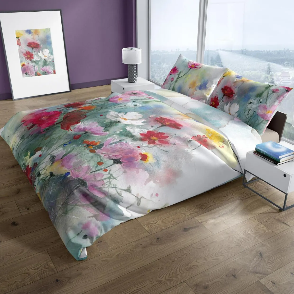 - Wyjątkowy design sprawia, że pościel wygląda jak wykonany akwarelami obraz. Eteryczne, przenikające się plamy barw oraz bogactwo kolorów czynią z kompletu wyjątkową ozdobę, która nada Twojej sypialni głębi i romantycznej elegancji.