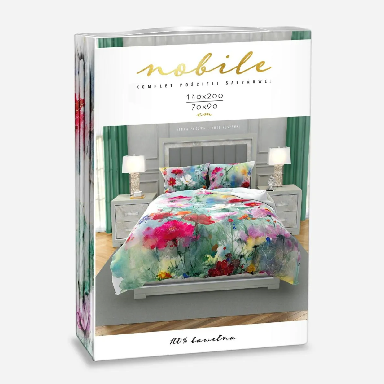 - 1 poszwę na kołdrę o wymiarach: 140×200 cm
