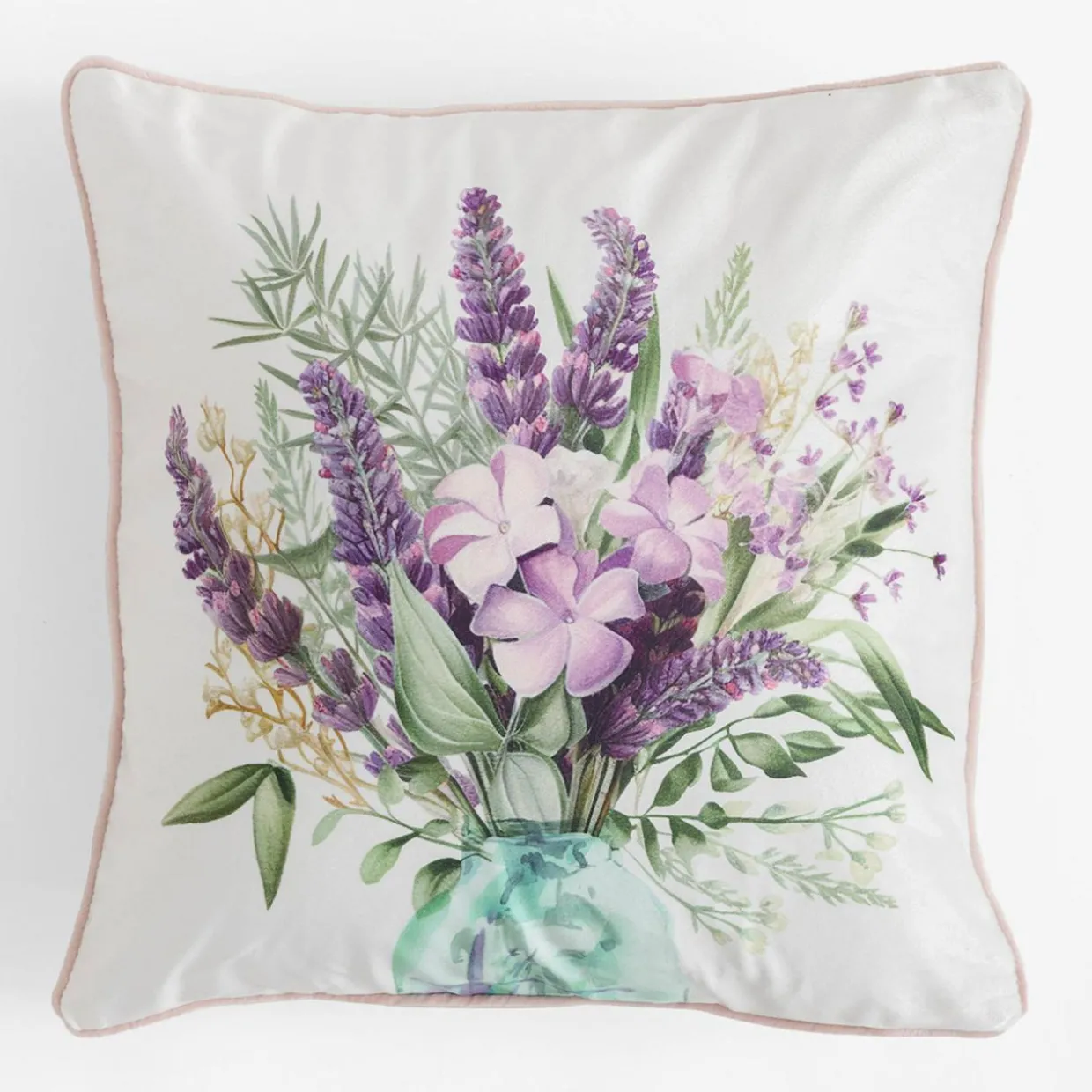 Ozdobna poszewka w różowe i fioletowe kwiaty z kolekcji SUZI wprowadzi do aranżacji przyjemny, wiosenny akcent.
