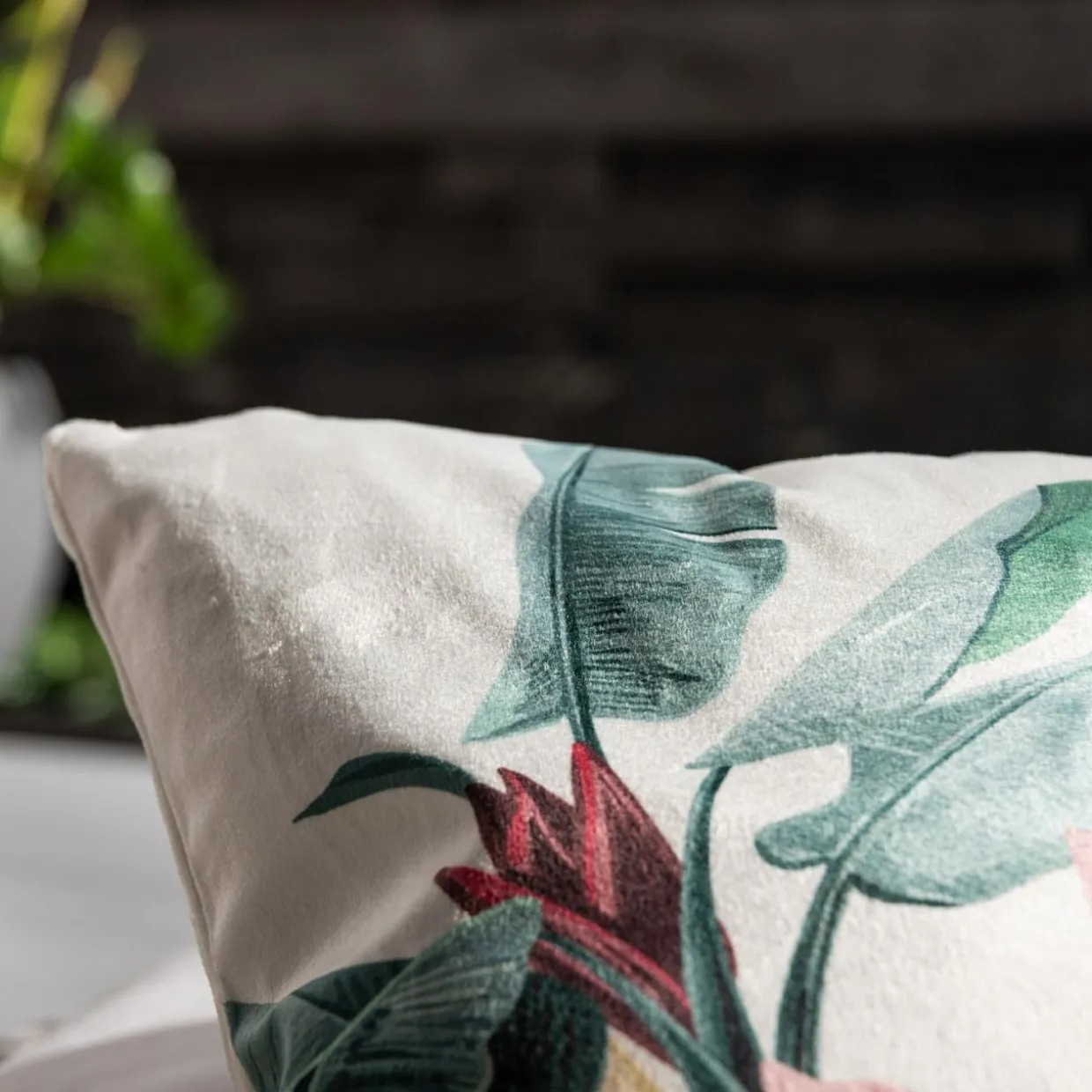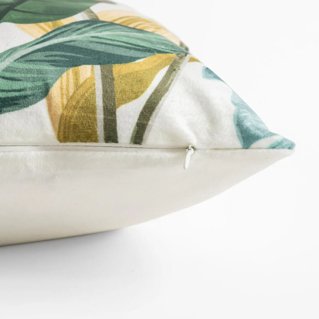 Welurowa biała poszewka MADERA zaakcentuje aranżację zainspirowaną egzotyką.