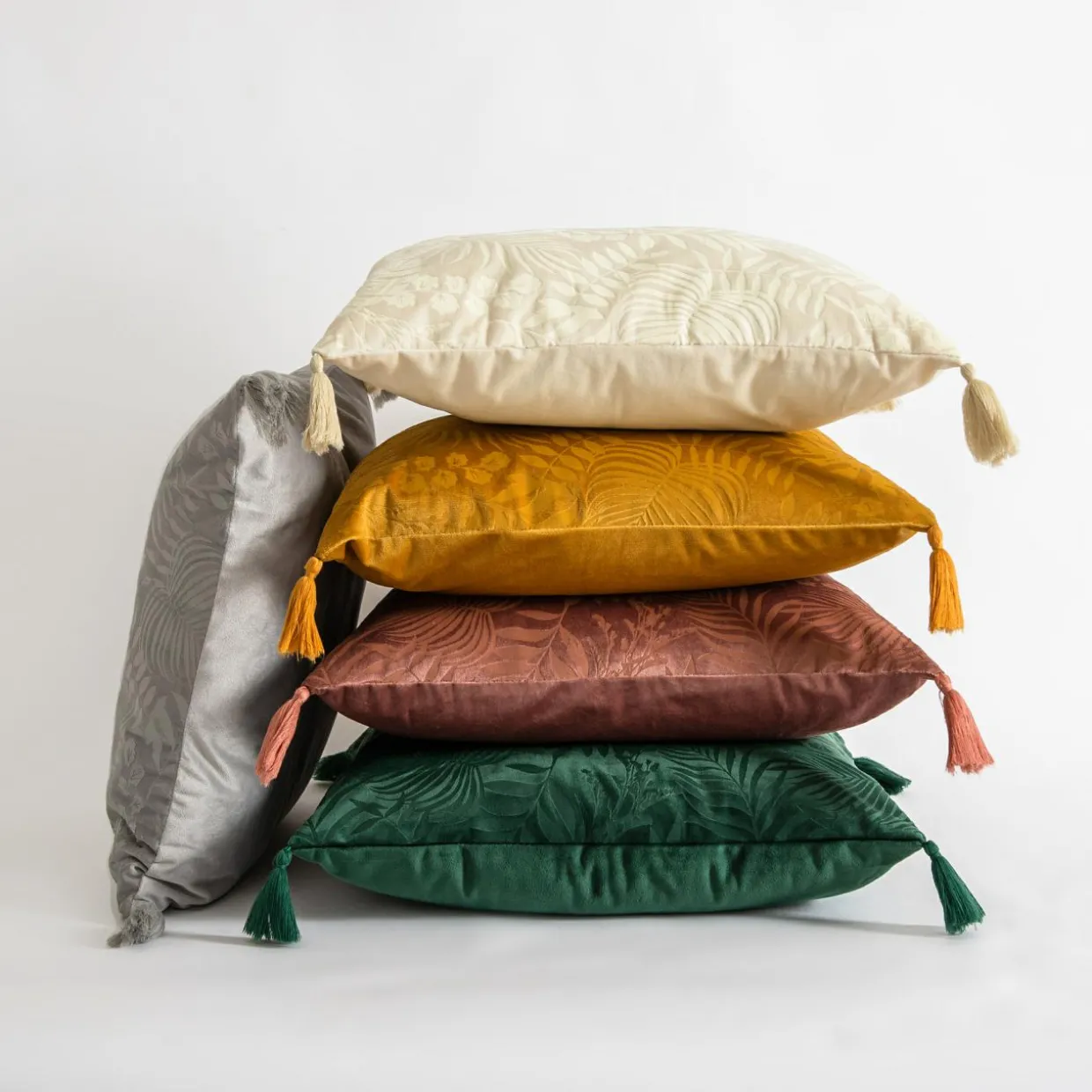 Welwetowa poszewka ADRIA z roślinnym motywem będzie spójnie wyglądać w aranżacji o stonowanej kolorystyce. Stworzysz harmonijny wystrój.