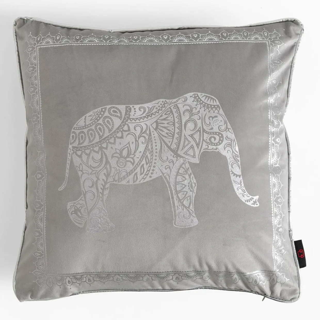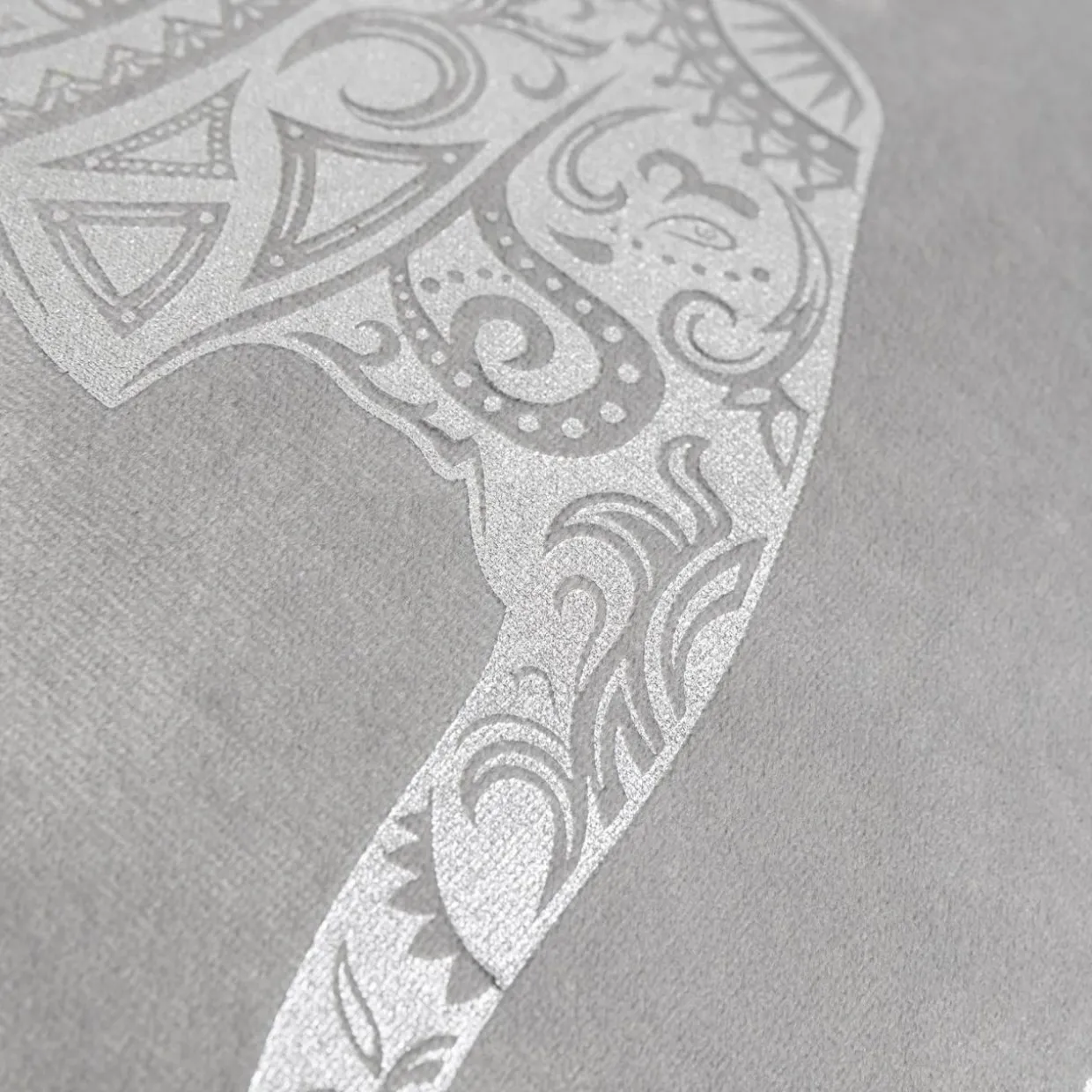 Jest uszyta z welurowego, gładkiego materiału. Jednostronny wzór z indyjskim srebrnym słoniem przykuje uwagę.