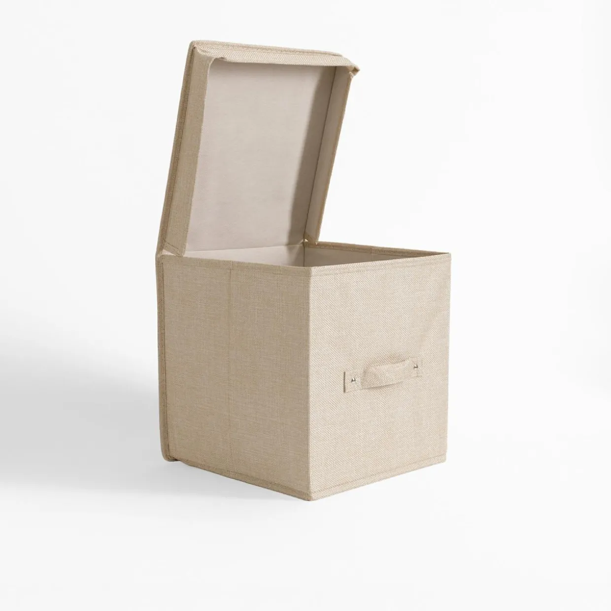 Pudło z pokrywą składane beżowe 28x28x28 cm