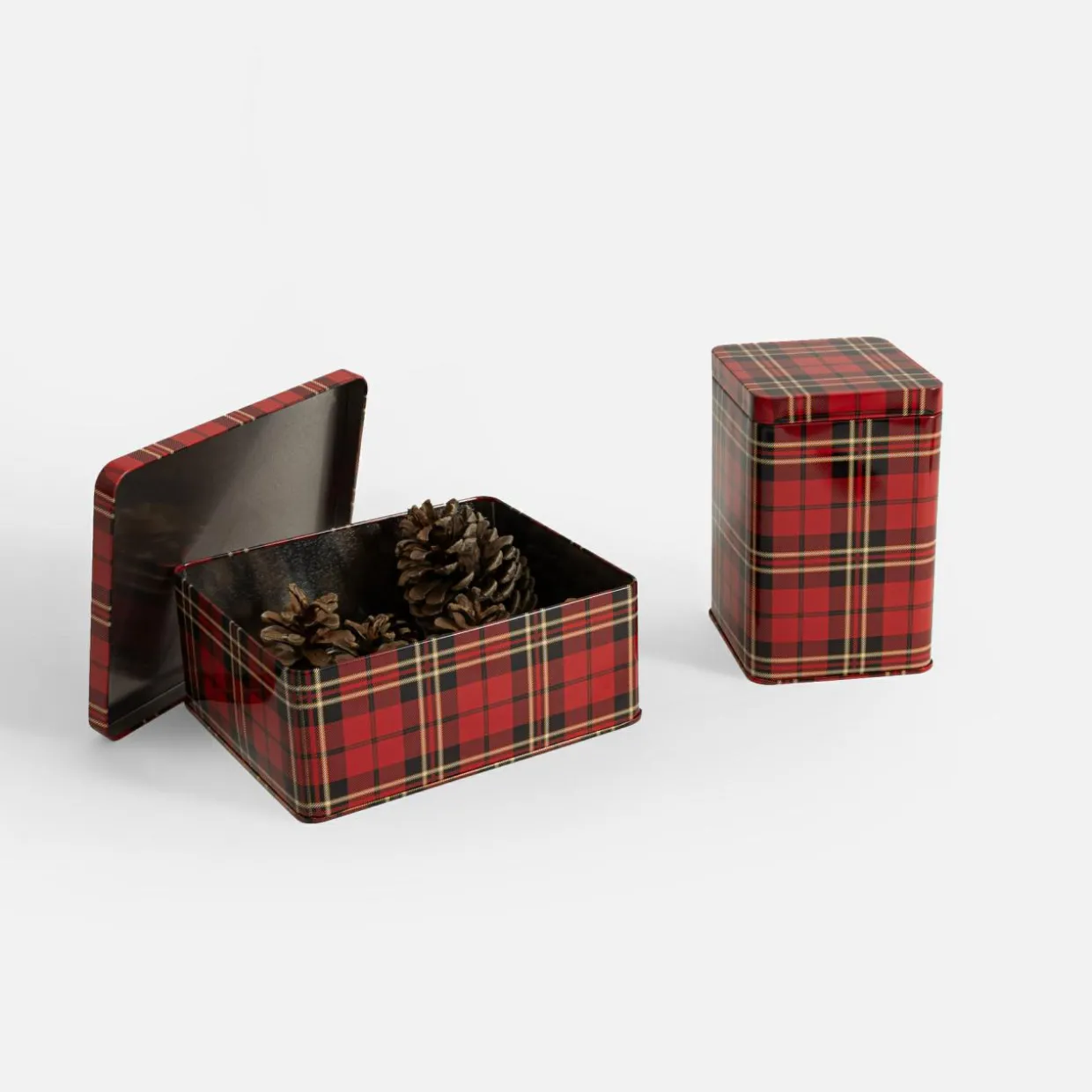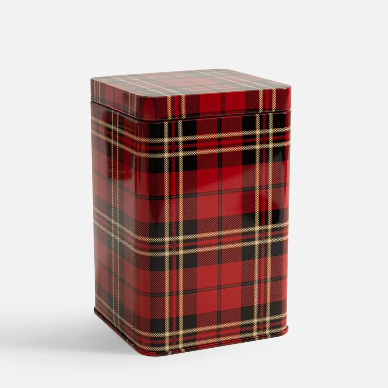 Puszka metalowa do przechowywania CZERWONA KRATA 1450 ml