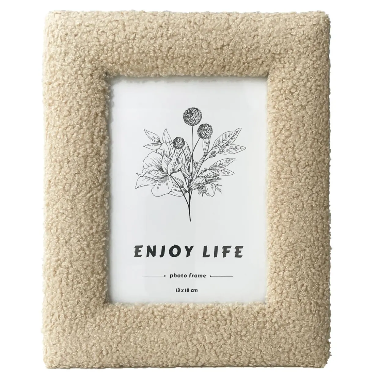 - Beżowa ramka na zdjęcia pasuje do wnętrza w stylu boho i vintage.