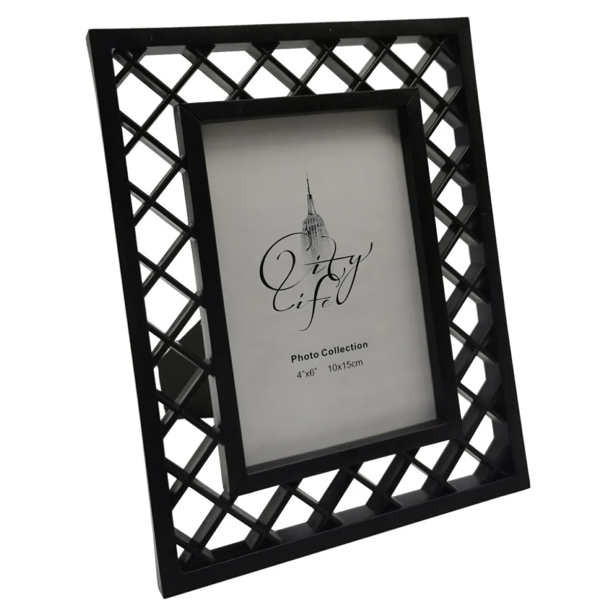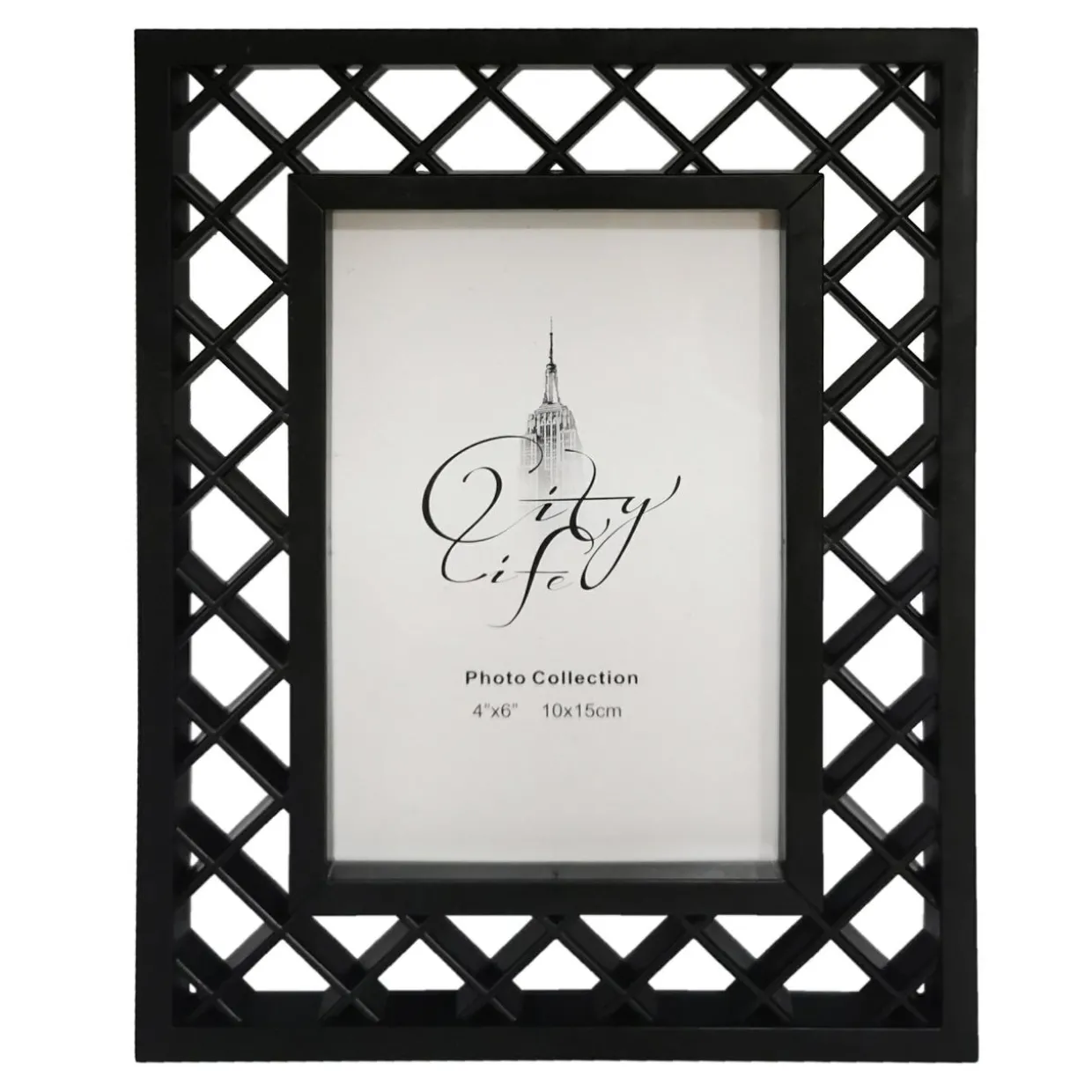 Czarna, ażurowa ramka zawieszona na ścianie stylowo odznaczy się na jednolitym, jasnym tle. Możesz także postawić ją na półce.