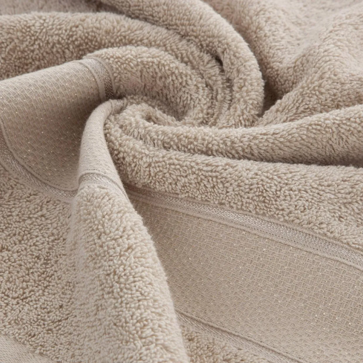 Bawełniany ręcznik z kolekcji LIANA wyróżnia się połączeniem prostego designu i ozdobnej bordiury z pobłyskującą nitką.