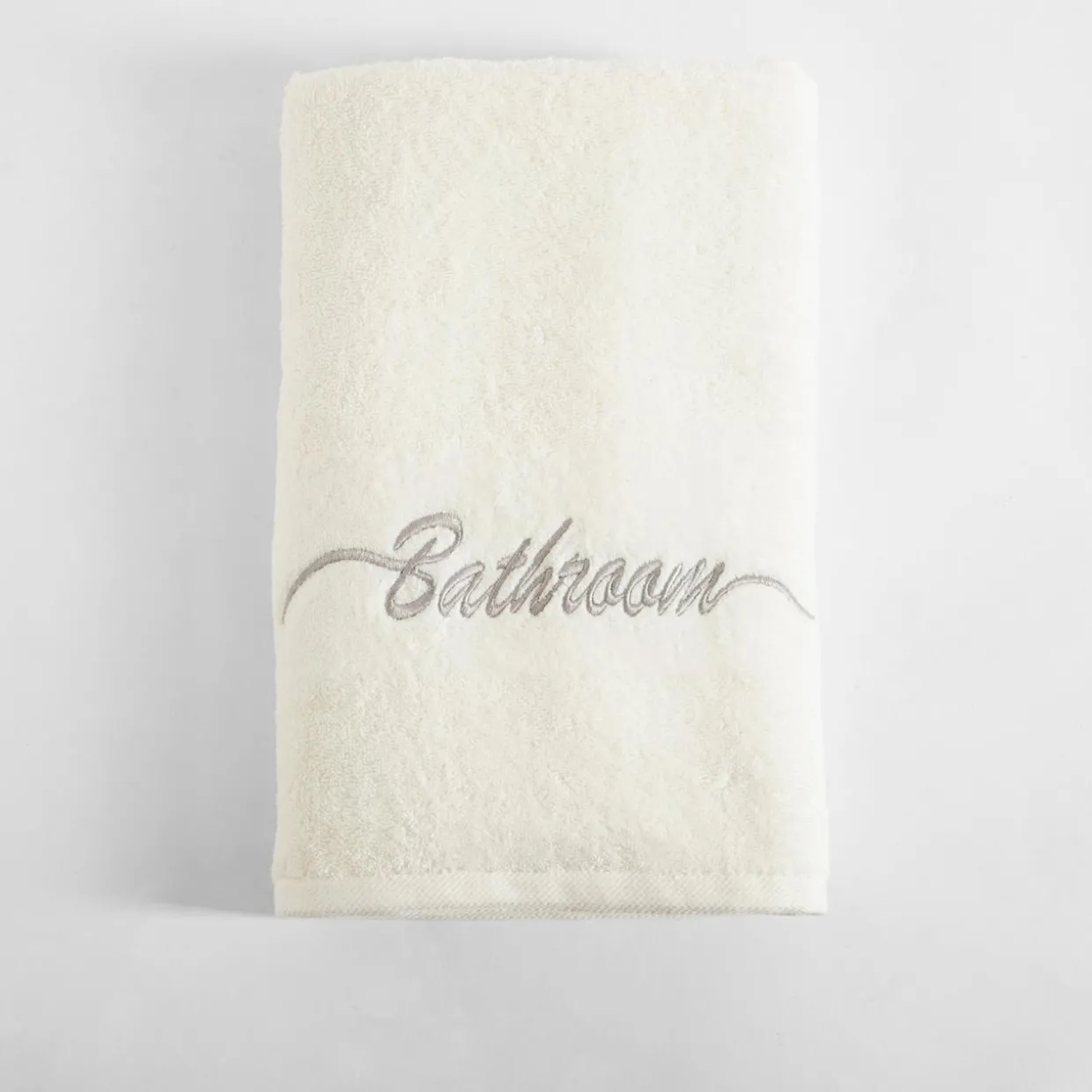 Ręcznik z dekoracyjnym napisem szybko znajdziesz go wśród innych dodatków.