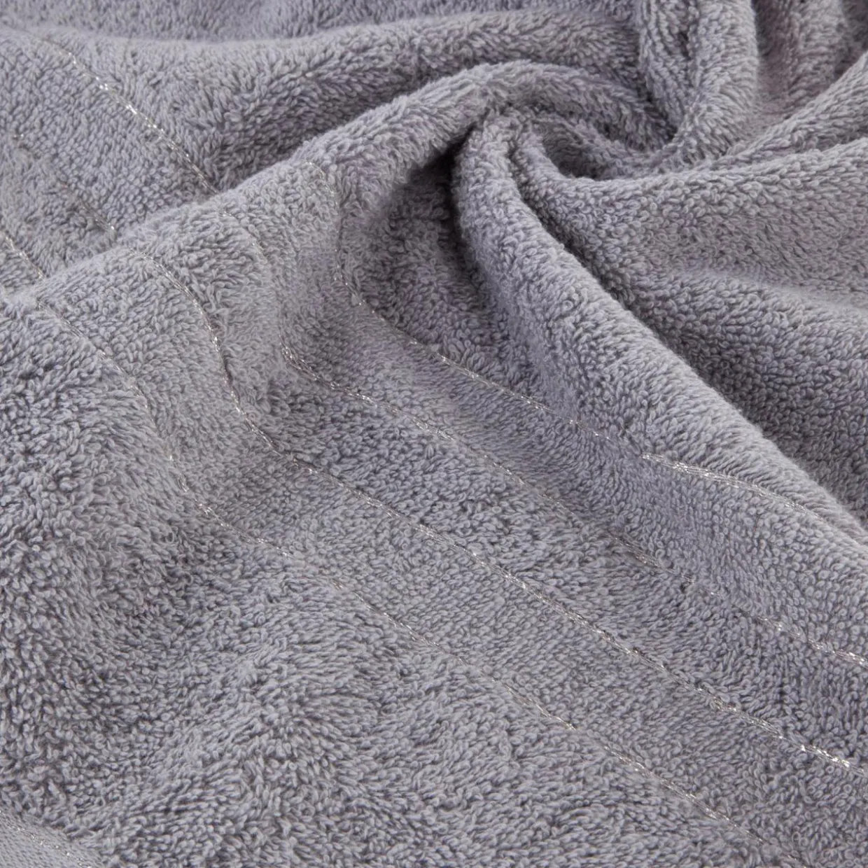 - Dwa ozdobne pasy z błyszczącymi poliestrowymi nitkami subtelnie wyróżnią go na tle łazienki.