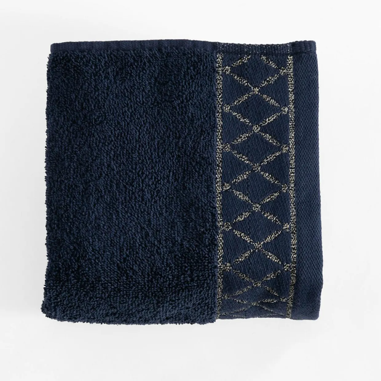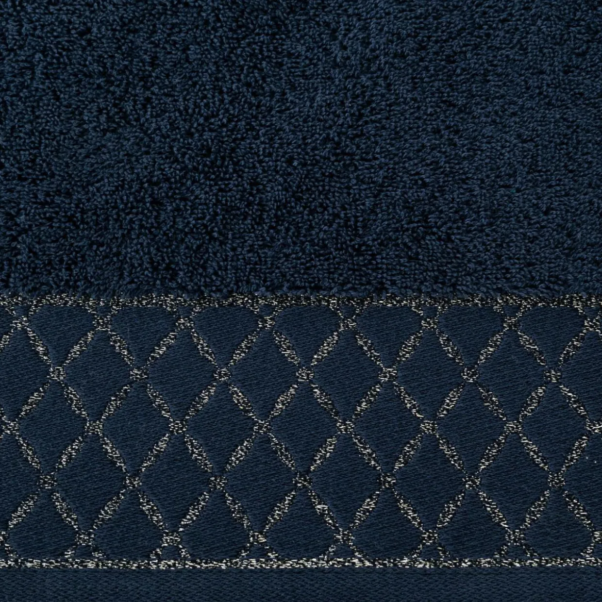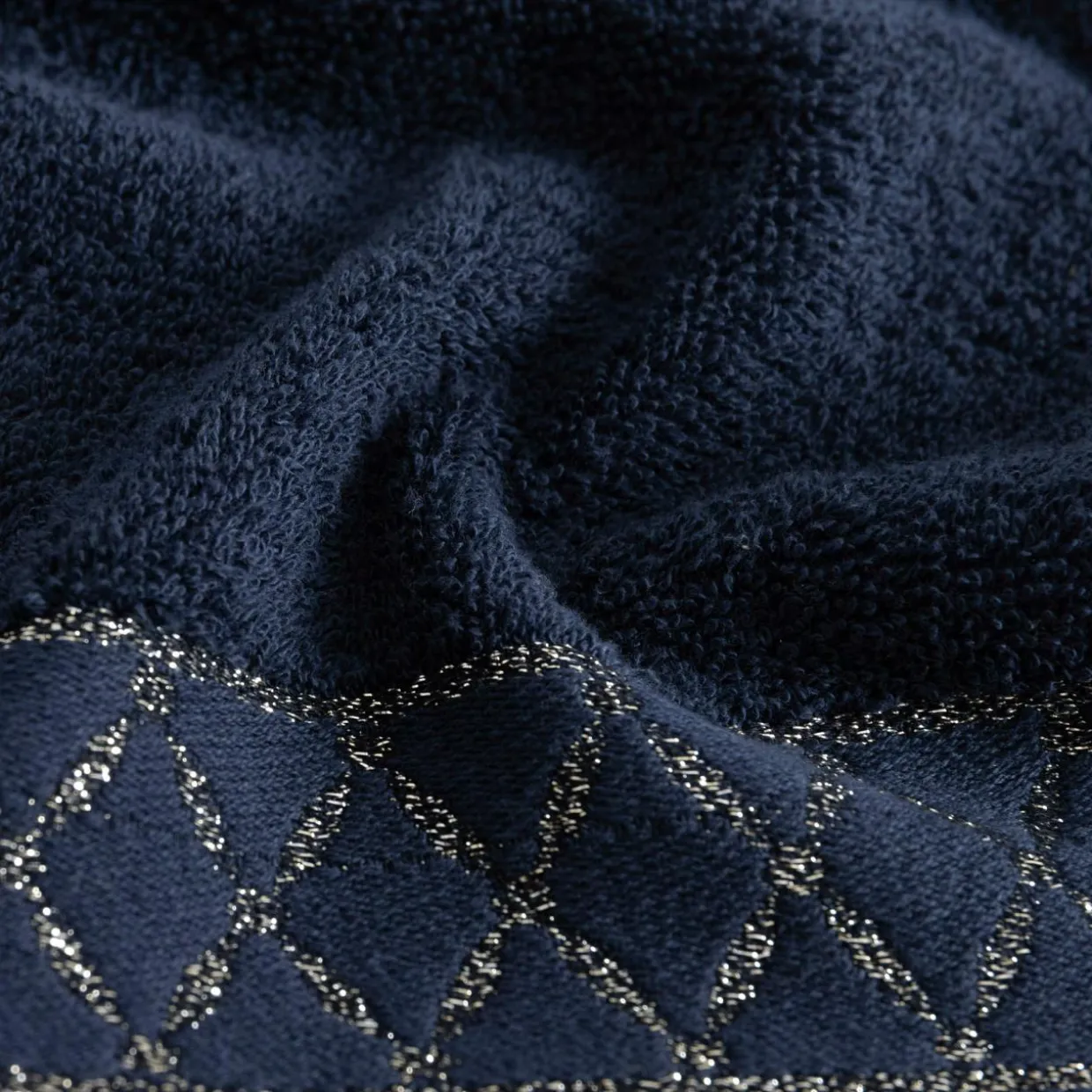 - Granatowy ręcznik wyróżnisz na tle kremowych lub białych ścian.