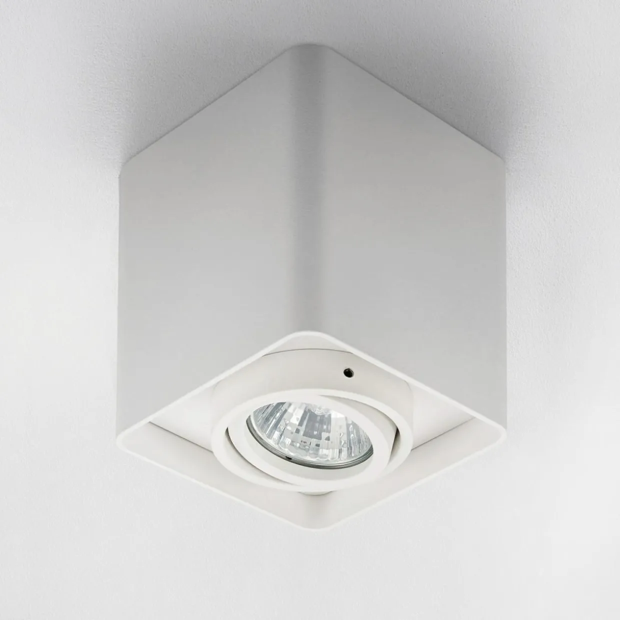 Spot QUADRO posiada oprawę dla pojedynczej żarówki typu GU10 o mocy maksymalnej 50W.
