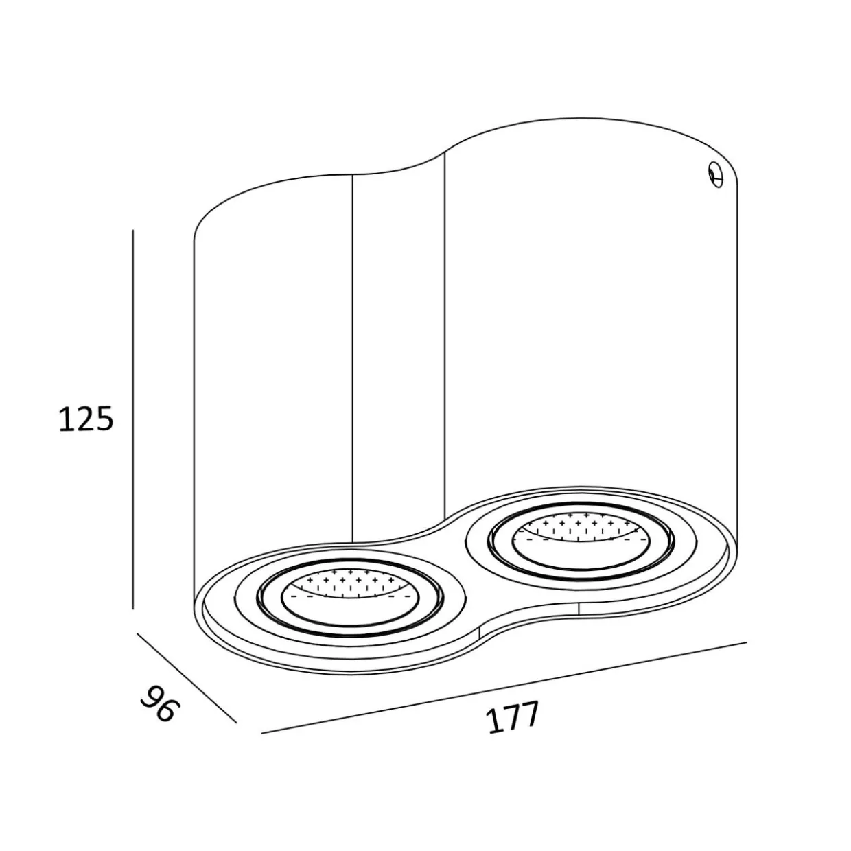 Spot RONDOO posiada oprawę dla dwóch żarówek typu GU10 i mocy maksymalnej 50W.