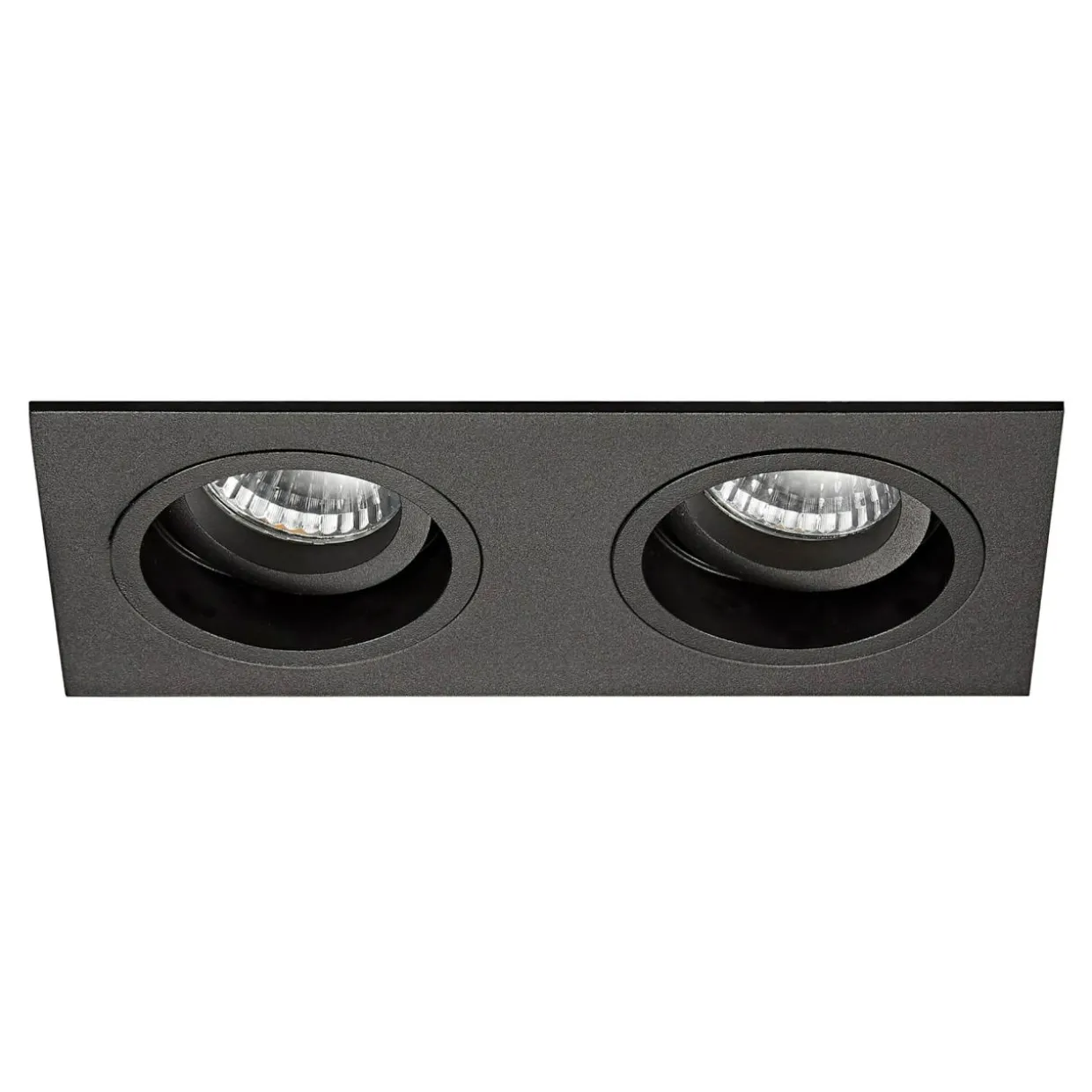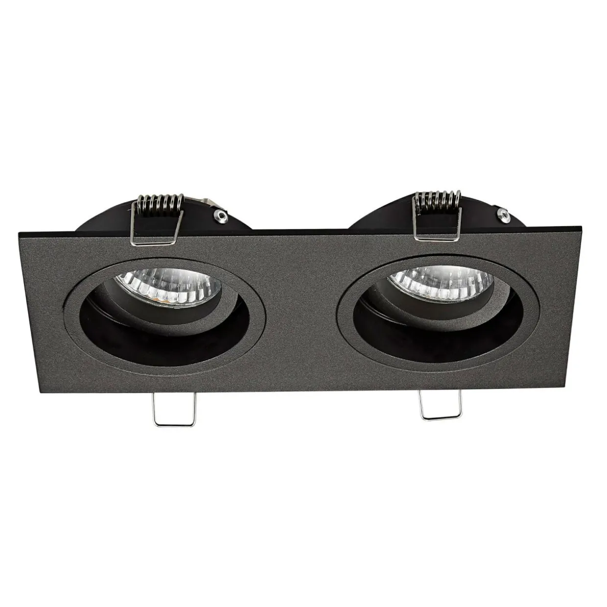Prostokątna obudowa lampy CHUCK jest utrzymana w eleganckim, czarnym kolorze. Stanowi oprawę dla dwóch żarówek typu GU10 o mocy 50W.
