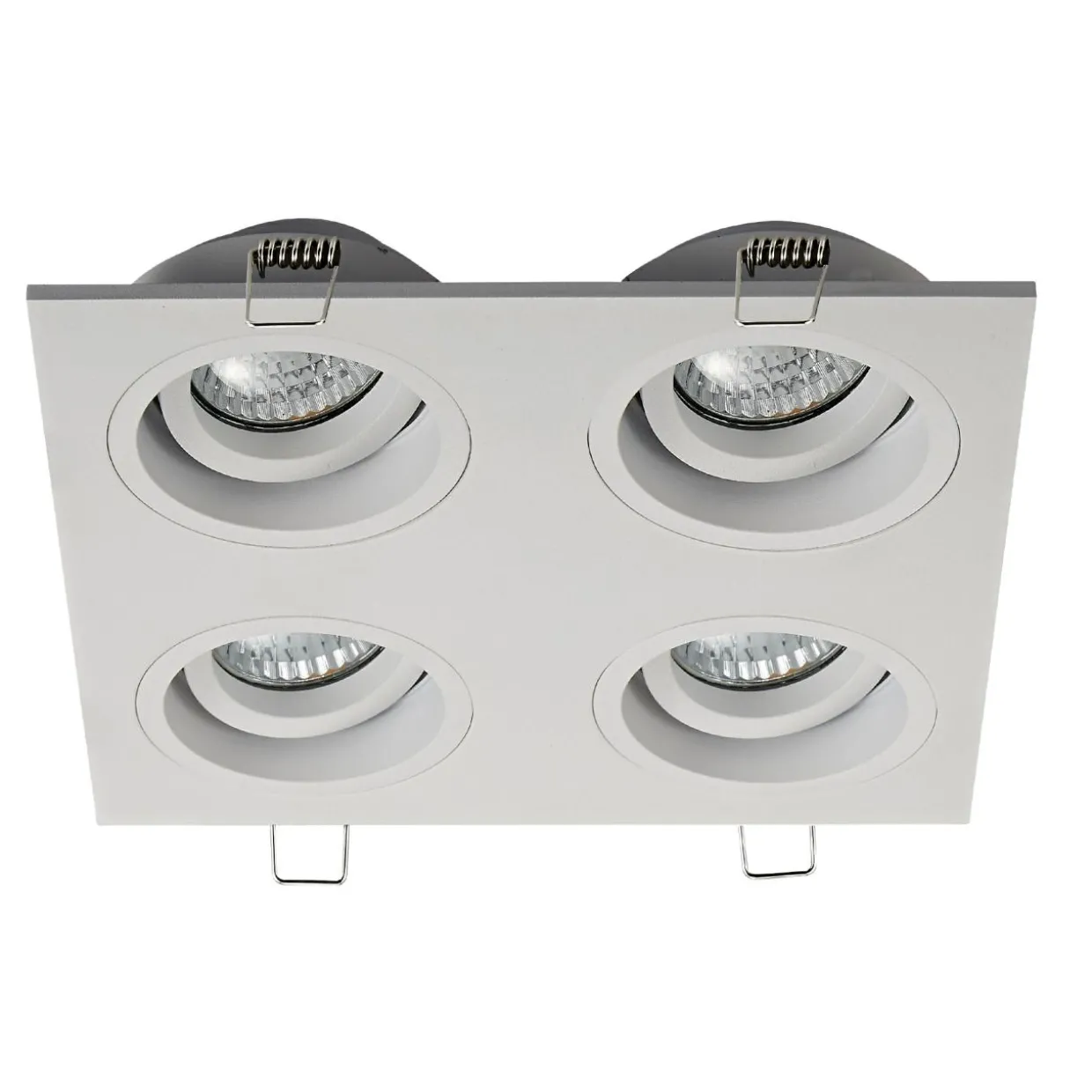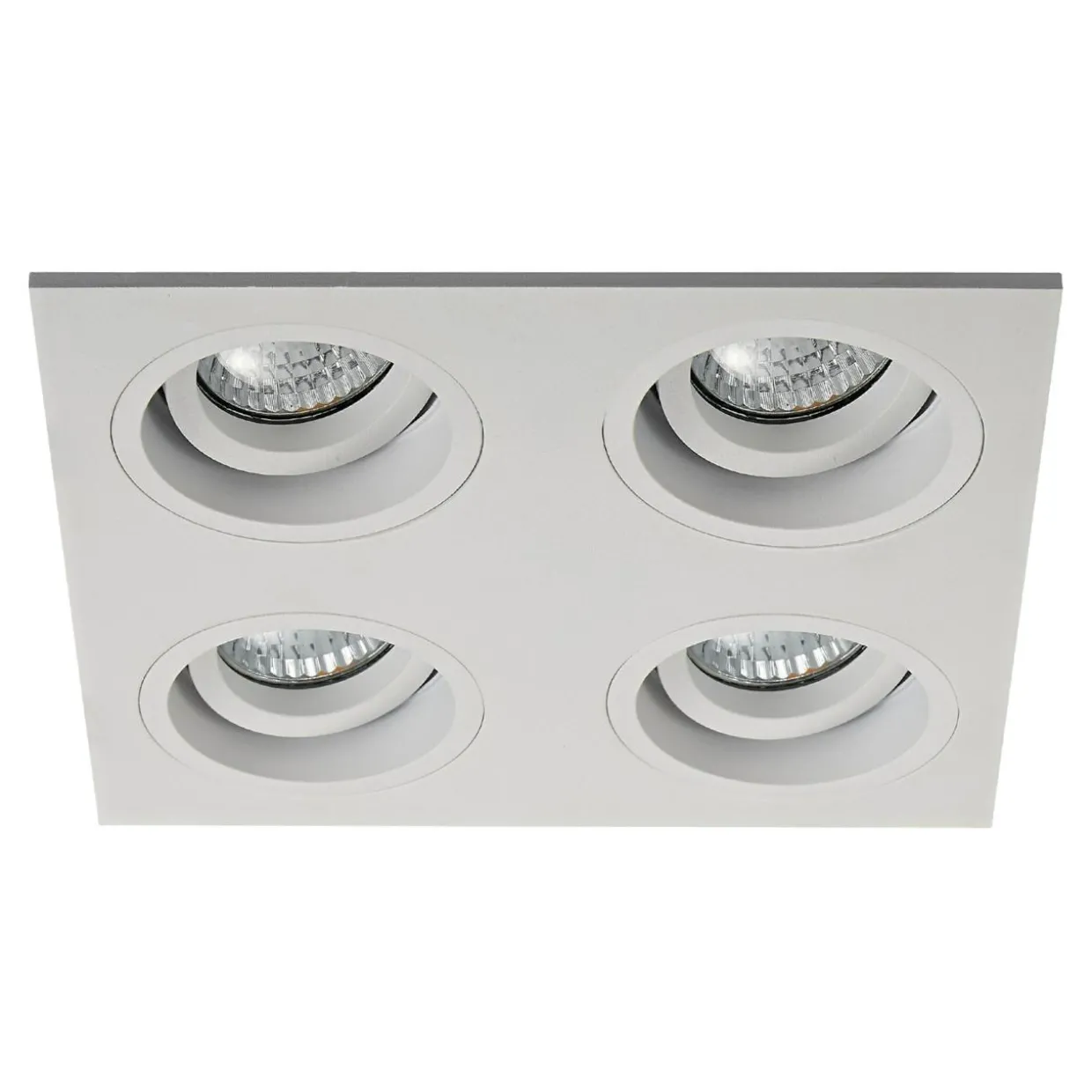 Prostokątna obudowa lampy CHUCK jest utrzymana w modnym, białym kolorze. Stanowi oprawę dla czterech żarówek typu GU10 o mocy 50W.