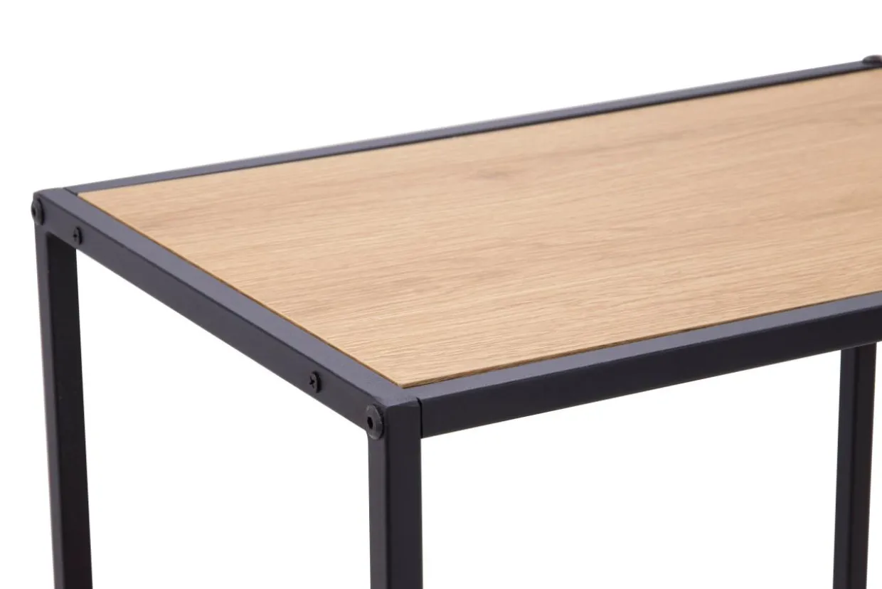 Zestawienie koloru jasnego drewna z metalowym, czarnym stelażem wprowadza do wnętrza nowoczesny design.