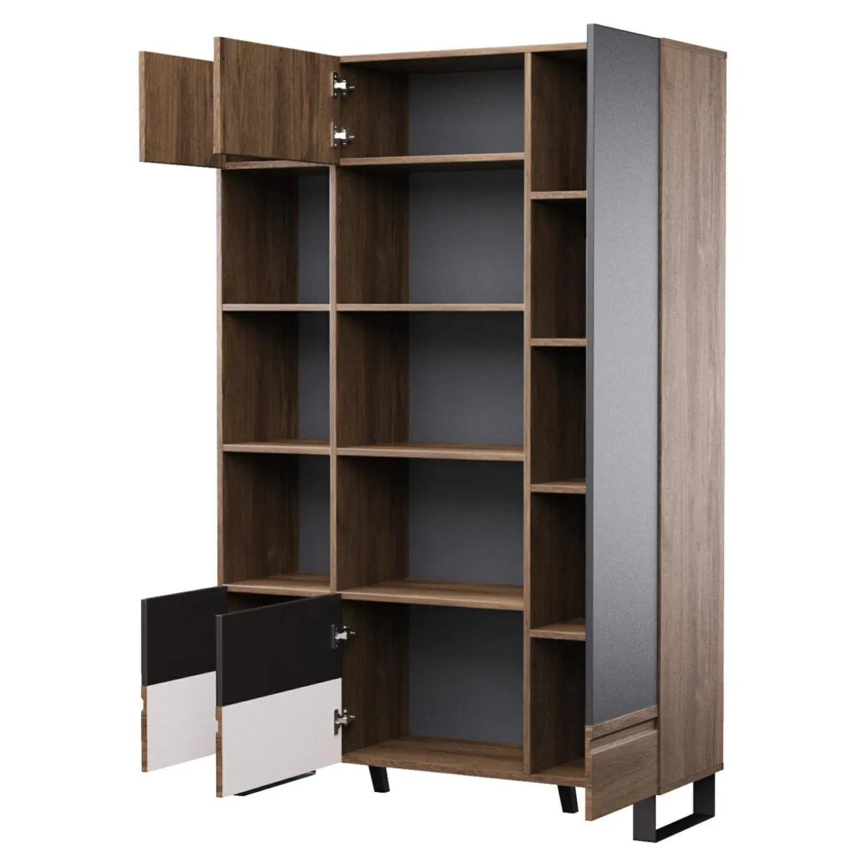 - 6 otwartych wnęk to świetne miejsce na wyeksponowanie ulubionych książek i pamiątek.