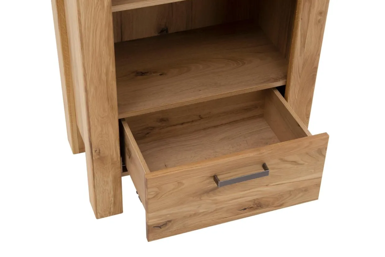 - Wstęga szuflady pokryta jest folią. Metalowy, prosty uchwyt stanowi elegancki element ozdobny i służy wygodnemu otwarciu szuflady.