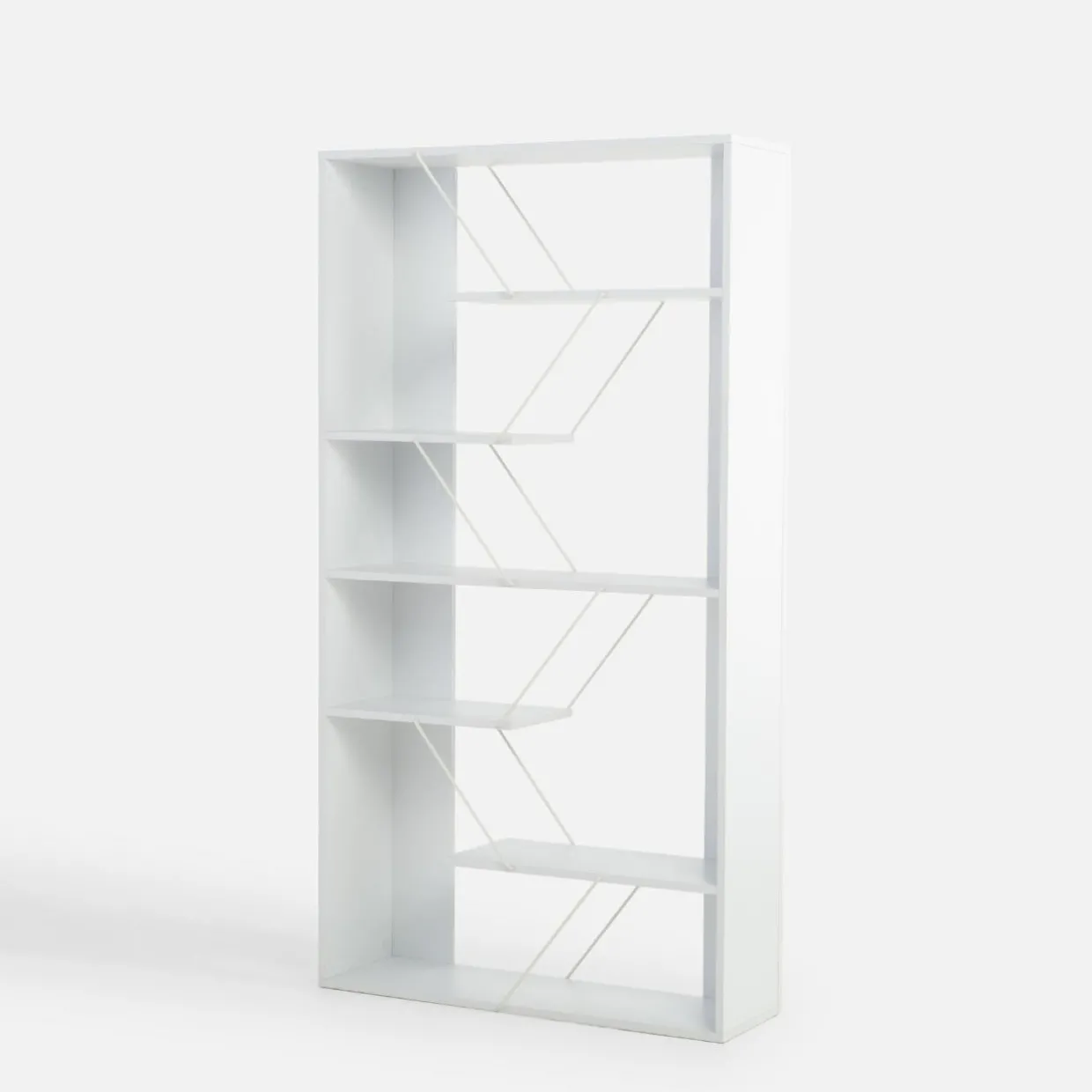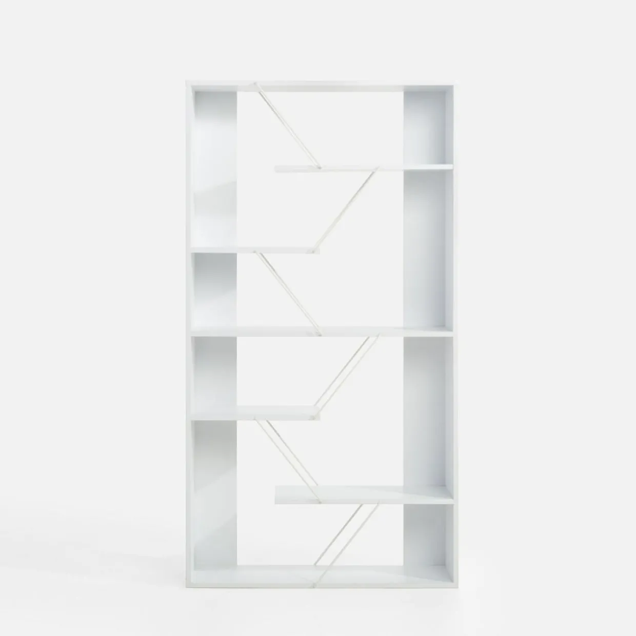 - Futurystyczny design – nietuzinkowy kształt regału przyciąga wzrok i nadaje pomieszczeniu nowoczesny charakter.