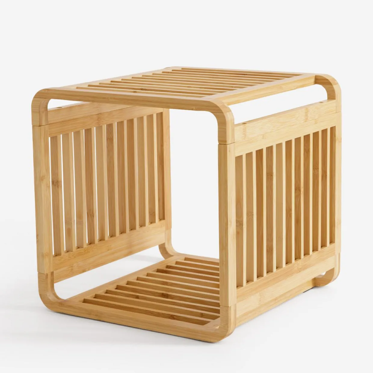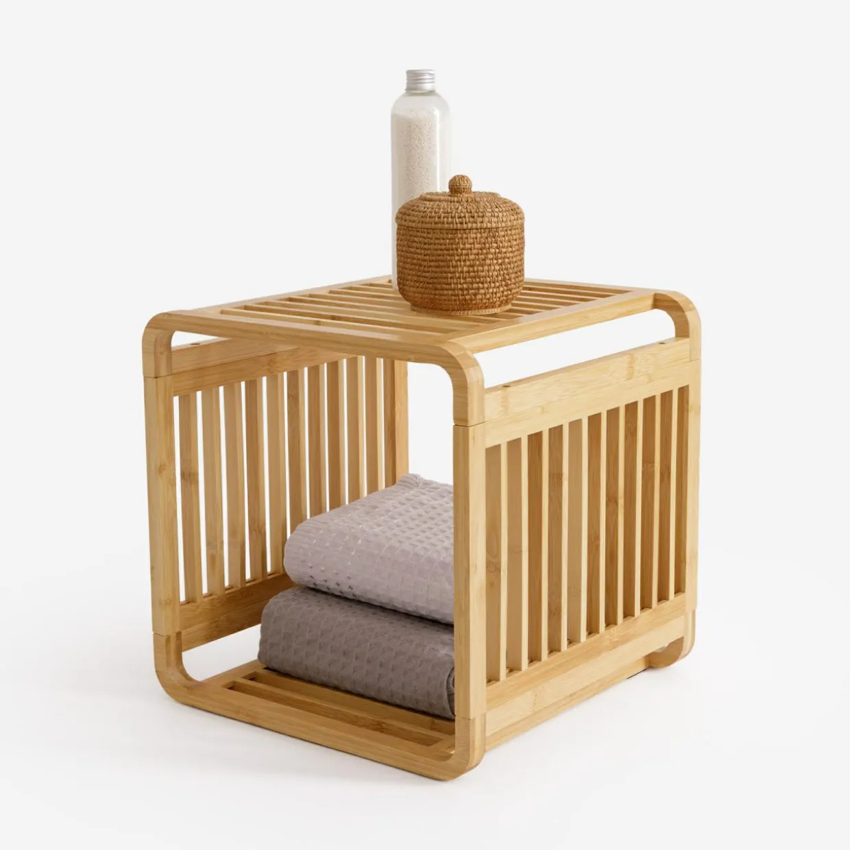Na bambusowym regale łazienkowym ułożysz zapasowe ręczniki, ściereczki czy opakowanie mydła w płynie.