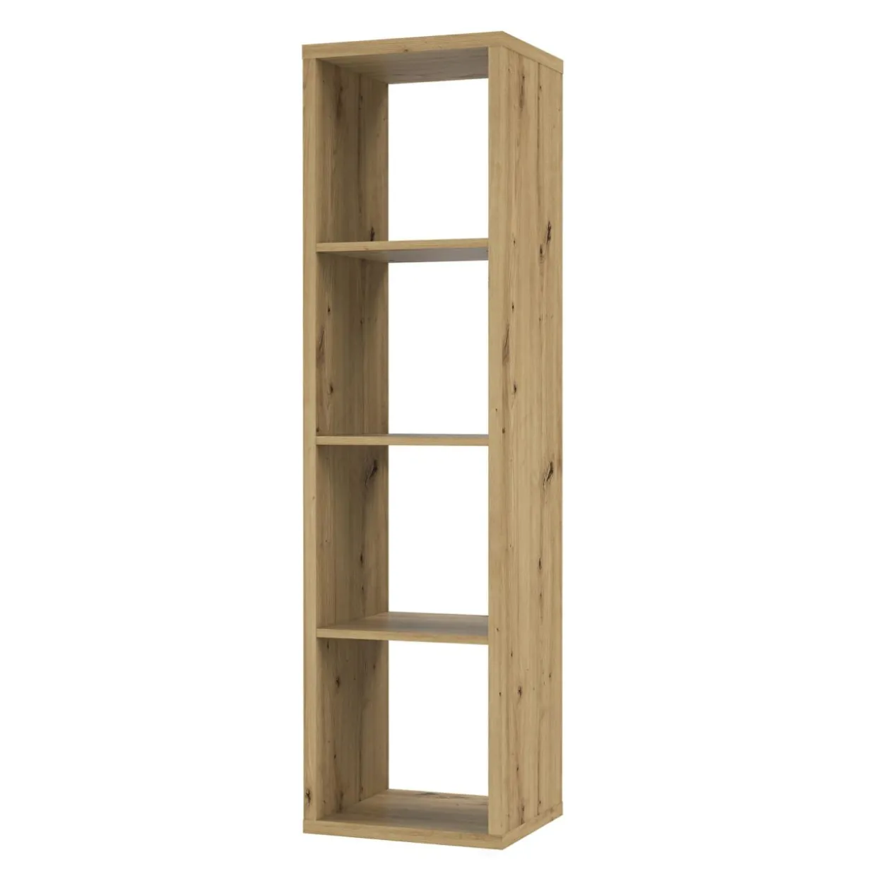 Regał MAURO to minimalistyczna bryła w ciepłym kolorze naturalnego drewna.