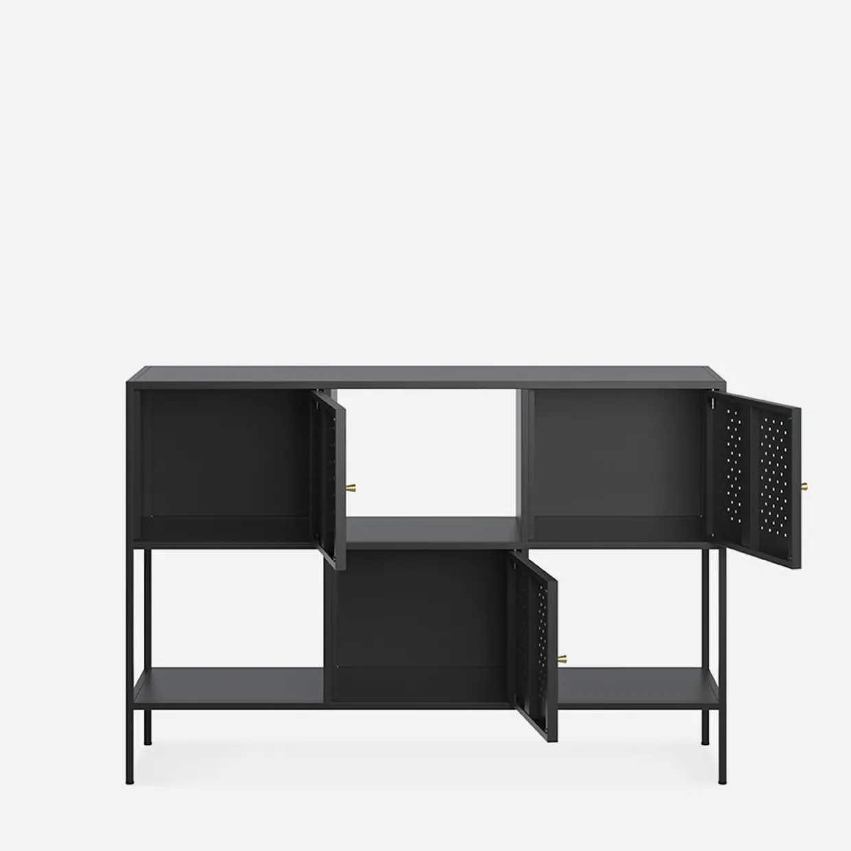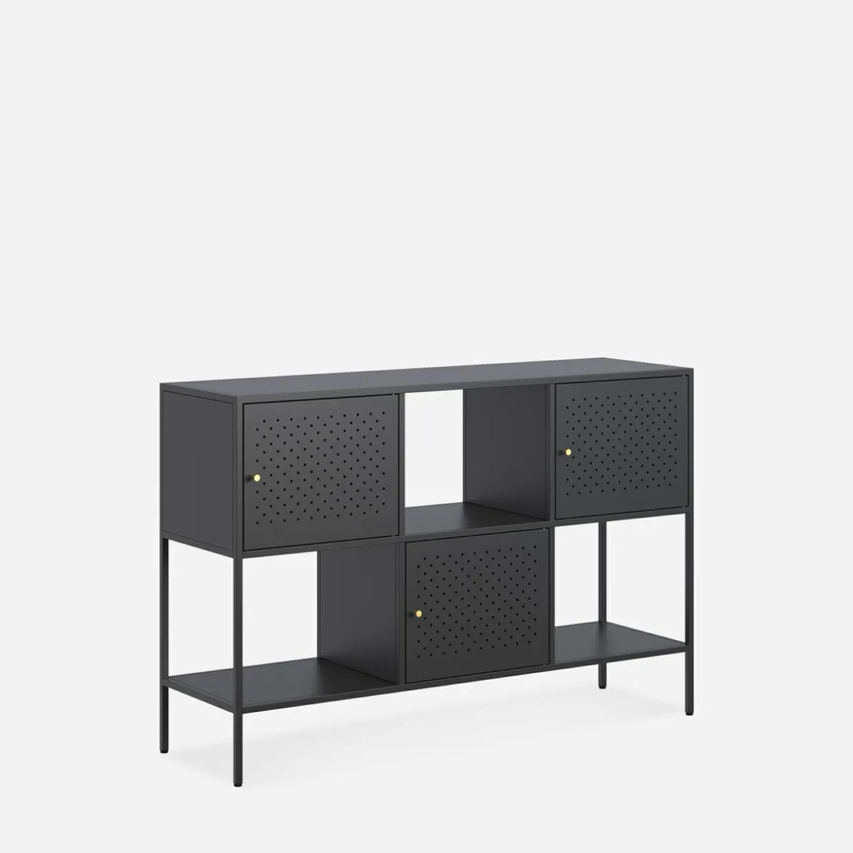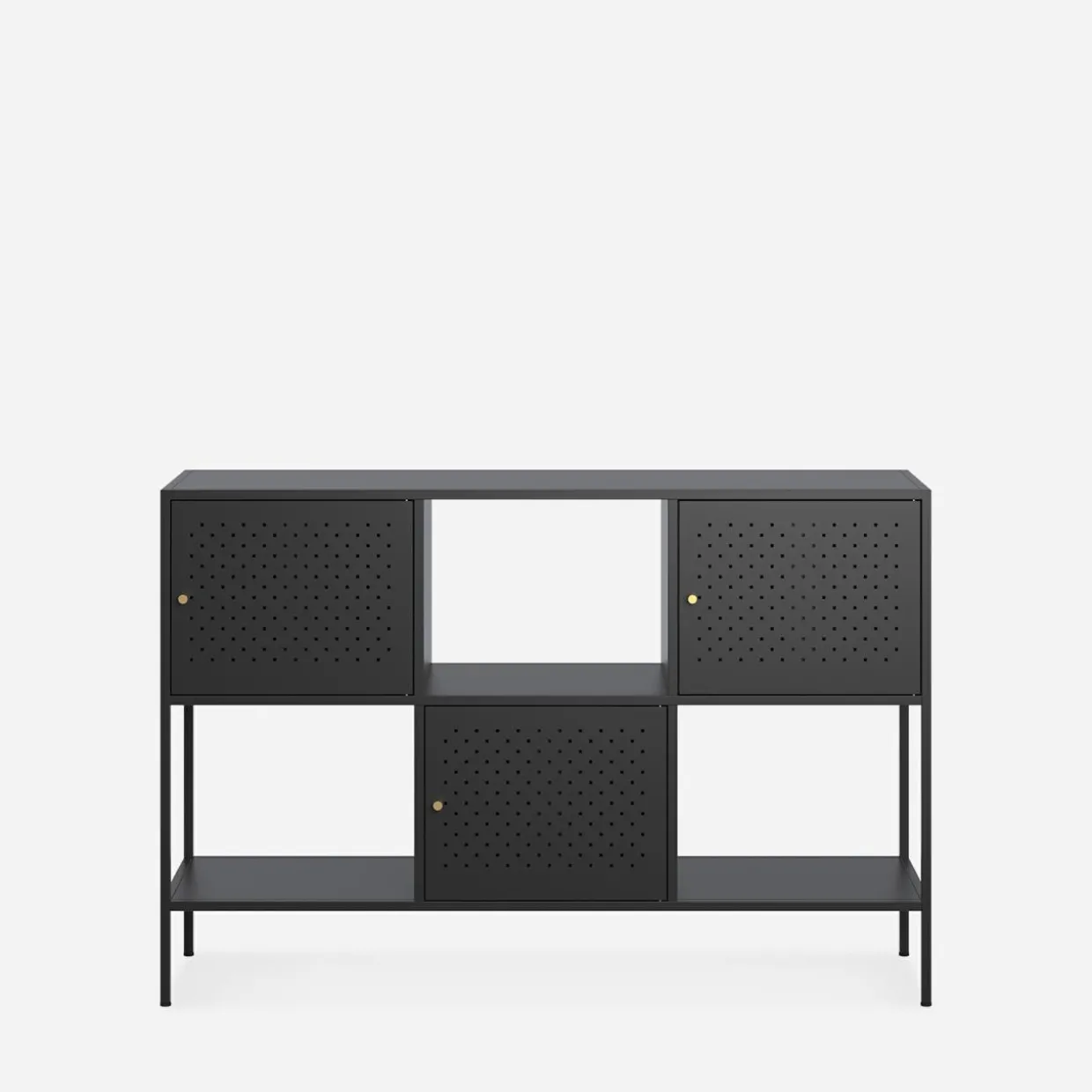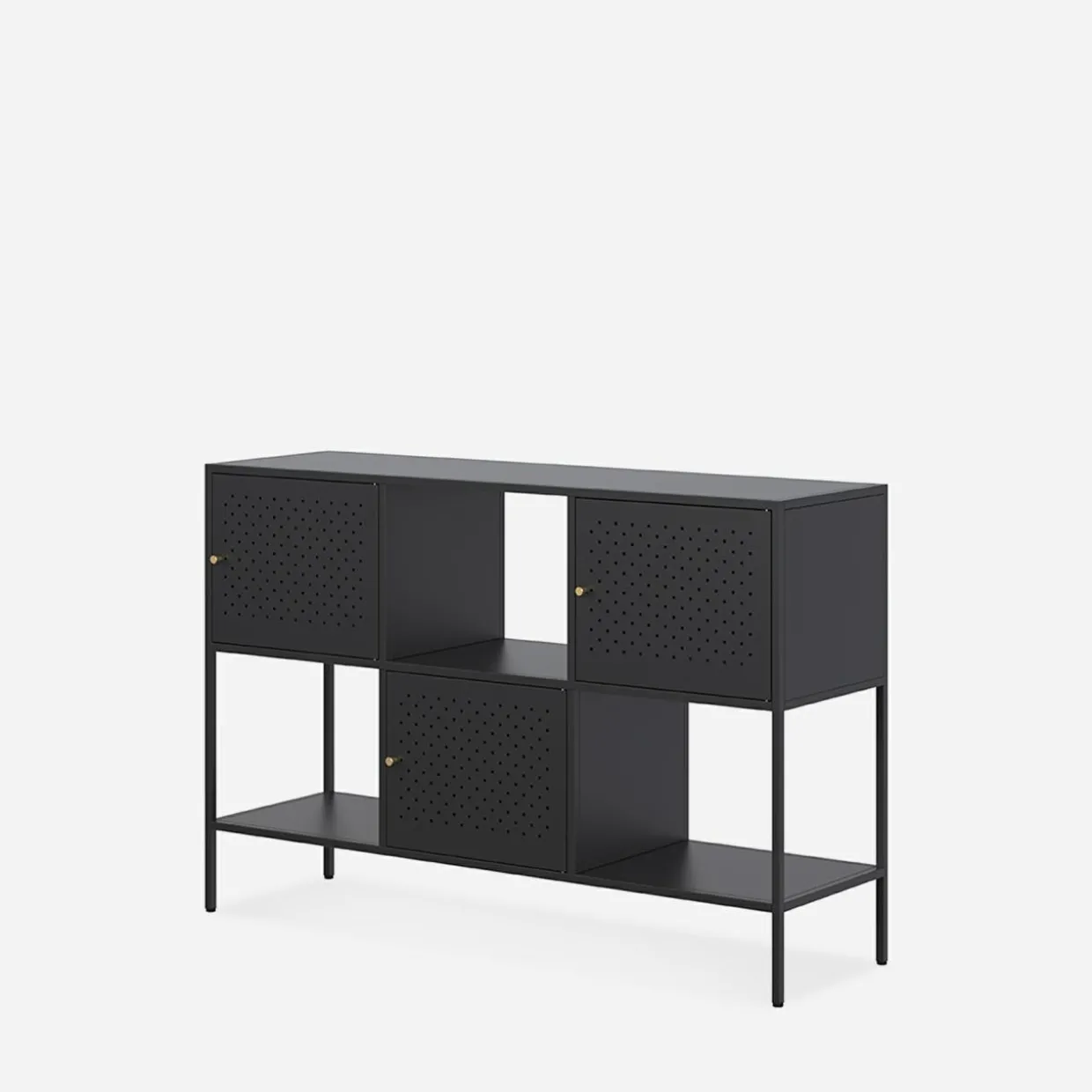 - Nowoczesny charakter – regał wykończony jest w kolorze czarnego matu.